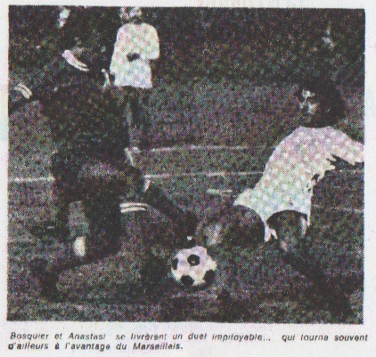 Parmi les joueurs olympiens, si tous méritent d'être félicité, Daniel Leclercq a plus particulièrement attiré l'attention sur lui. À la fin de la rencontre, si la colonie olympienne a même scandé son nom sur l'air des lampions, c'est qu'au milieu du terrain Daniel Leclercq fut certainement le joueur le plus lucide et le plus précis de son équipe. Ses passes exécutées à la plus grande vitesse, c'est-à-dire parfois en déviation, trouvèrent presque toujours un partenaire. Il tira un corner qui permit à l'O.M. de prendre un petit avantage sur la Juventus. |