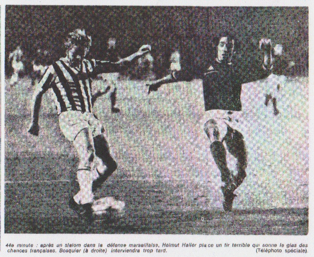 Mais à la 50e minute, Anastasi ayant été bousculé par Zvunka, sur un centre de Haller, la Juventus bénéficiait d'un penalty tiré par Causio et bien détourné par Carnus, qui évitait à son équipe un quatrième but que tout le stade espérait. La partie maintenant perdait de son intérêt, malgré le courage de l'O.M. et le brio de la Juventus. Et 10 minutes avant la fin du match, malgré son courage, Haller, blessé à la cuisse, devait laisser sa place à Altafini. La dernière partie de la rencontre n'apportait aucune modification au score. L'O.M. venait de subir une lourde défaite. Louis DUPIC |