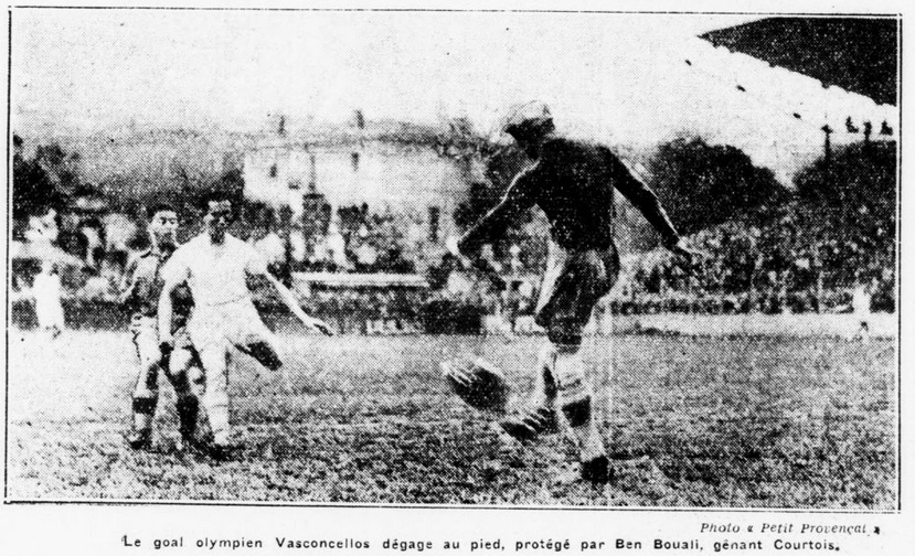 Un autre record battu : celui des voitures sir le Prado. On comptait jusqu'à trois rangées de véhicules sur les allées latérales. De la chaussée n'en parlons pas. Le Grand Prix ne fait jamais mieux. ~~ Les tickets d'entrée eux-mêmes furent épuisés. On dut refuser des supplémentaires aux spectateurs des populaires voulant passer au pesage.~~ Un geste sportif est celui accomplit par certaines de nos grandes administrations qui libérèrent dès 17 heures ceux de leur employés voulant assister au match, inutile d'ajouter qu'il en eut beaucoup.~~ Ceux des spectateurs perdus dans la foule et ne connaissant du match que les cris de ceux qui voyaient quelque chose, exhalaient leur désir de voir le Stade Municipal s'agrandir. Patience~~ Des records de vitesse. Ceux partis quelques minutes seulement de leur travail avant l'heure du match. Ceux voulant éviter la pluie. Ceux désireux d'attraper le premier tram à la sortie. Quel juge à l'arrivée nous dira jamais lesquels d'entre eux furent les plus vites.~~ On avait fait le plein aussi à la tribune presse. Pour dix pupitres, trente journalistes ou tels se faisaient les assauts de courtoisie en langage sportif ;~~ Dans la tribune officielle, nous avons noté aux cotés de M. Henri Raymond, Président de l'O.M., MM Abelly Président de la ligue du Sud-Est ; Santagostino et Arietti conseillers municipaux ; Dard, président d'honneur de l'O.M. ; Devaux, président du syndicat de la presse sportif du Petit Provencal ; Anfosso, Blanc, Rodolphe, Pllack, Sabater, ec. |