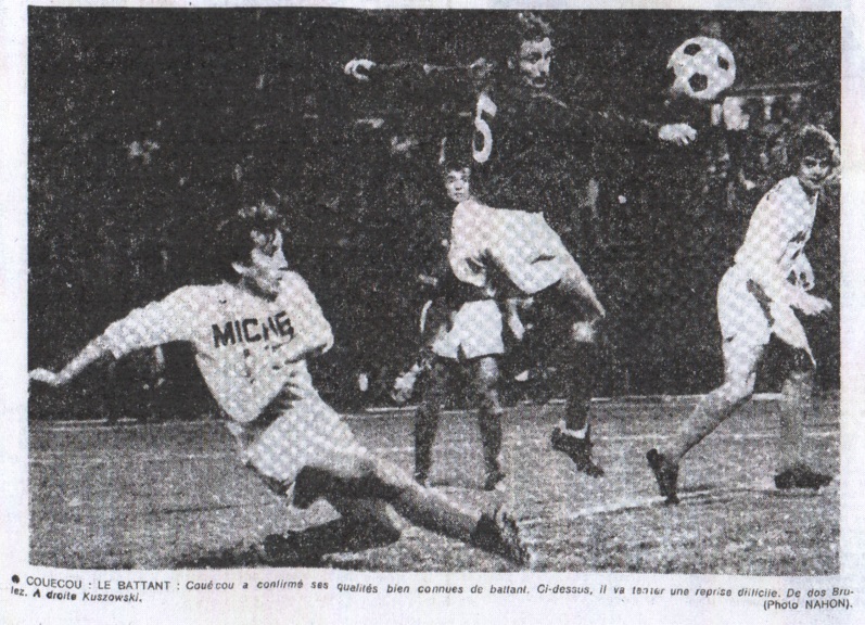 L'équipe de l'O.M. si elle fut largement dominée en deuxième mi-temps, alors que pourtant elle allait égaliser, avait fait une première mi-temps beaucoup plus convaincante. Le principal responsable du jeu olympien fut Leclercq, dont les passes longues contrastèrent avec le jeu généralement trop court de son équipe. Tandis que ses partenaires commettent l'erreur de porter la balle, lui la frappe. Malheureusement, en deuxième mi-temps, il accusa très nettement les effets de la fatigue et, de ce fait, ses passes furent moins précises et son action moins efficace. Il est vrai que pendant cette deuxième période, privé de Trésor en défense et souffrant de la blessure de Keruzore, l'O.M. sembla être une proie facile pour les Angevins. Dans l'équipe d'Angers, le plus remarquable fut le jeu collectif. Bien qu'elle paraisse souvent jouer au pas, cette équipe a su trouver son style et l'on n'a aucune inquiétude pour elle. Bien entendu, le milieu du terrain, Guillou, Poli, Edwige, plus parfois le Yougoslave Antic, fit une véritable démonstration de jeu court. Pour ceux qui aiment le football fin et précis, l'équipe d'Angers et un morceau de choix. Maurice FABREGUETTES |