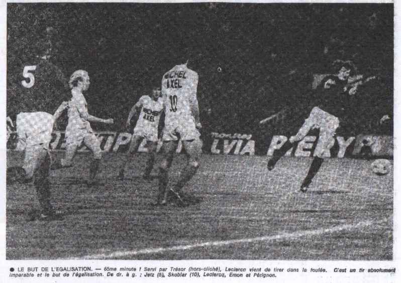 Une passe de Bosquier dans une partie libre du terrain trouva Trésor monté franc en francs-tireurs, sans ballon. Le libéro olympien, fort bien inspiré en la circonstance, passa en retrait à Leclercq, le gauche instantané de ce dernier était absolument imparable. Imparable aussi fut, cinq minutes plus tard, la reprises directe de volée de Le Boedec, à la suite d'un corner. Ce but spectaculaire ne méritait qu'un commentaire : "Pour réussir, il faut oser !" Nous nous trouvions alors exactement dans la même situation que contre Bastia. Ayant refait son retard sur Metz, l'O.M. allait-il, sur sa lancée, conquérir le point du bonus.