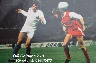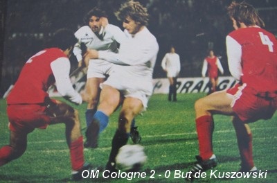 LOPEZ donne l'élan Qui pouvait supposer, après une première période extrêmement calme et contrôlée longtemps par les Allemands, que nous allions assister par la suite à une telle escalade d'événements ? Il n'y a que le football pour réserver de pareilles surprises. Et l'O.M., que l'on avait souvent, dans le passé, accusé de "mal terminer", nous offrit une seconde mi-temps échevelée ! Bien malin, cependant, qui pourrait dire ce qui serait arrivé si Jean-Pierre Lopez n'avait pas donné l'élan décisif... Kuszowski - qui allait se rattraper par la suite - et Victor Zvunka, venaient d'échouer à quelques centimètres du gardien allemand, quand l'excellent Diego, qui avait d'ailleurs joué jusqu'alors de façon remarquable, délivra, depuis le côté droit de la surface, un tir que Welz ne put que repousser dans ses filets... Dès lors, rien ne pouvait plus arriver à l'O.M., qui obtenait immédiatement un second but, en même temps que le score espéré... Mais Lopez n'est pas fini de jouer ! Sur une vive réaction rhénane qui suivit, on le vit sauver, coup sur coup, son camp à deux reprises, en allant chercher de la tête, dans une détente prodigieuse, une balle dans la lucarne, avant d'en repousser une autre sur sa ligne. Ainsi, ce modèle d'équipier, discret à l'extrême, joua-t-il un rôle de tout premier plan dans la performance de son équipe. Il était juste qu'il reçoive un jour, de façon éclatante, la récompense de plusieurs saisons de dénouement à la cause commune. C'est fait avec ce triple exploit qui permet à l'O.M. d'aller à Cologne avec une chance sérieuse ! Louis DUPIC |