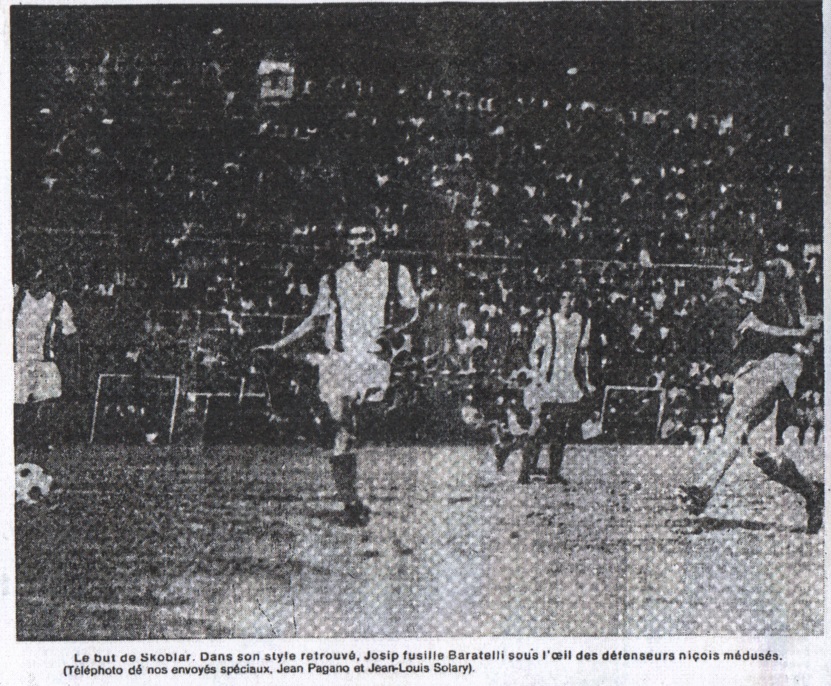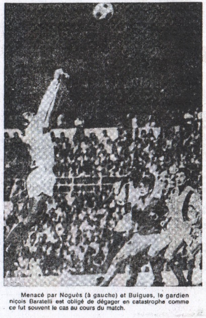 NICE - Nous nous attendions à un match très chaud. Il le fut au propre et au figuré. Nous supposions que le débat serait animé, indécis, et partant passionnant. Il le fut aussi, au-delà de toutes limites. Mais personne n'avait envisagé que l'O.M. allait sur le stade du Rey plus au-delà du possible, humilier son grand rival régional. Le président Meric, lui-même, à qui nous voulions essayer de faire croire, avant le débat, que son équipe allait l'emporter, nous répondait en souriant : "Vous savez me faire plaisir. Vous savez, une petite défaite par 2 à 1 ne serait pas pour nous une mauvaise chose." Pourtant, sur l'ensemble de la rencontre, la victoire olympienne fut méritée. Elle a été celle de la meilleure équipe de cette chaude soirée, de celles qui, ayant su calmer le jeu, en première mi-temps, devant un adversaire niçois déchaîné, s'envola littéralement et irrésistiblement vers la victoire, au cours de la deuxième période. Ce succès est, avant tout, celui d'une équipe complète qui sut se battre, du commencement à la fin, mais il serait injuste de ne pas ajouter que les coups de patte de Paulo César représentèrent un peu mieux que le légendaire coup de pouce du destin. Bref, une victoire méritée et brillante et qui va mettre du baume au coeur de tous les supporters marseillais, surtout de ceux qui, hier, n'avaient pas fait le déplacement de Nice. Malgré la chaleur très lourde dans les tribunes et, par conséquent encore plus pesante sur la pelouse, la première mi-temps avait été de bonne qualité. Visiblement, Nice et l'O.M. seront, cette saison encore, dans le peloton de tête de notre championnat. Les deux équipes jouaient sensiblement de la même façon. Une très grande défensive, mais une participation à l'offensive d'un nombre de joueurs suffisants, pour appuyer véritablement les actions. La différence de 1 à 0, pour les Niçois, à la pause fut essentiellement le fait que Huck. Joueur opérant sur toute la surface du terrain, il plafonna sur cette première période, insaisissable, omni-présent et inspiré. Il fut à l'origine du but marqué par Loubet à son ancienne équipe et posa, a ses adversaires, des problèmes souvent insolubles. En ce qui concerne, Paulo César, de l'autre côté, le même rôle lui était dévolu. Opérant par à-coups, faisant alterner les temps morts, et les actions brillantes, le Brésilien influa moins sur le court de cette première mi-temps que ne l'avait fait Huck. Mais son jeu très coulé, tout en finesse, en vitesse de déplacement et en lucidité, représente l'une des meilleures armes offensives de l'O.M. Sur le plan tactique, on avait pu remarquer qu'au jeu groupé de l'O.M. peut-être un peu lent dans l'exécution, Nice répliquait par une grande vitesse dans ses fulgurantes contre-attaques. Mais nous n'étions alors qu'à la mi-temps et tout était encore possible. |