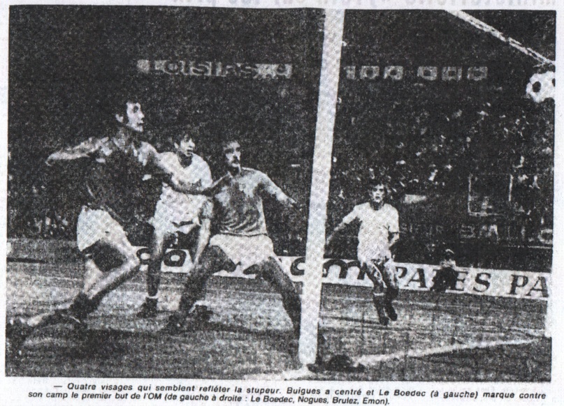 On s'amuse toujours avec Angers. Une équipe poussant l'originalité jusqu'à se défendre en attaquant. C'est tellement rare en 1974 et dans le football français, que nous ne pouvons décemment commencer cet article sans donner un coup de chapeau aux Angevins, à Guillou, à Edwige, à Antic et à tous les joueurs au maillot vert qui nous valurent une rencontre ouverte, débridée, et, partant, passionnante. L'OM, sans Paolo César et après un début de match laborieux, a su entrer dans la danse, à l'image de Buigues, de Lemée, de Bracci et de Noguès, qui mirent beaucoup de coeur à l'ouvrage. Il est certain que l'OM a eu la chance de pouvoir, sur son terrain, jouer en contre-attaque. Mais, quelle que soit la tactique adoptée, l'important est de savoir saisir sa chance, de frapper au bon moment. En définitive, on se souviendra, après cette rencontre, que des trois buts marqués par les Olympiens. UN EXPLOIT DE CHARRIER La mi-temps s'est terminée sur un résultat (2 à 0) que le plus optimiste des supporters olympiens n'aurait pas espéré à la 40e minute. Le match avait débuté sur un rythme angevin très ralenti. Le jeu été tellement gentil que l'arbitre M. Baucourt n'avait pas encore sifflé le moindre coup franc à la 10e minute. Le fait est assez rare pour être noté. Par la suite, M. Baucourt ne devait pas trop user de son sifflet : 10 coups francs en faveur de l'OM à la mi-temps et six pour Angers. C'est là une moyenne habituelle et honorable. M. Baucourt est certainement un honnête arbitre. Bref, Angers, pendant la partie de cette mi-temps, s'était montré supérieur à l'OM dans le domaine de la pose des banderilles. Une seule sérieuse tentative d'estocade, à la 6e minute, quand Berdoll après un excellent crochet, tira fortement dans la foulée. Mais Charrier réussit là le premier exploit olympien du match, parvenant à détourner la balle de sa cage, bien que pris à contre pied. Quant à l'OM, il n'avait jamais, pratiquement, tiré dans l'encadrement au cours des 40 premières minutes. DEUX MINUTES DE RÊVE Mais, une fois de plus, en allait sera s'apercevoir que le football est une science totalement inexacte. Alors que le public commençait à gronder et que Vannucci, blessé à l'épaule, se préparait à quitter le terrain, la situation changea du tout au tout en deux minutes : 42e et la 44e. |