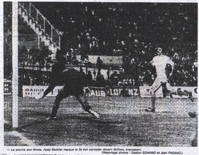 A-T-ON ASSISTE À UN GRAND MATCH ? Assurément pas. Certes Guillou a fait apprécier sa technique nettement au-dessus de la moyenne, mais l'Angevin n'eut, en fin de compte, aucune action décisive pour son est équipe, ce qui n'est pas le moindre des paradoxes. Ceci précisé, il faut avouer que les maladresses furent nombreuses et à mettre au passif des deux formations. En deux mots, le match fut plaisant, notamment à cause des quatre buts échangés, mais beaucoup trop décousus, surtout en deuxième mi-temps, pour que l'on puisse dire que nous avons assisté à une rencontre d'un bon niveau technique. LE BUT D'ANTIC A-T-IL DE L'IMPORTANCE ? Et comment ! En effet, à la 53e minute, l'O.M. totalisait dix points au classement. De minutes plus tard, il n'en avait plus que neuf dans son escarcelle. Ce but fait donc perdre à l'O.M. un point, celui du bonus. C'est un peu comme si Angers avait réussi le nul au stade vélodrome. André DE ROCCA |