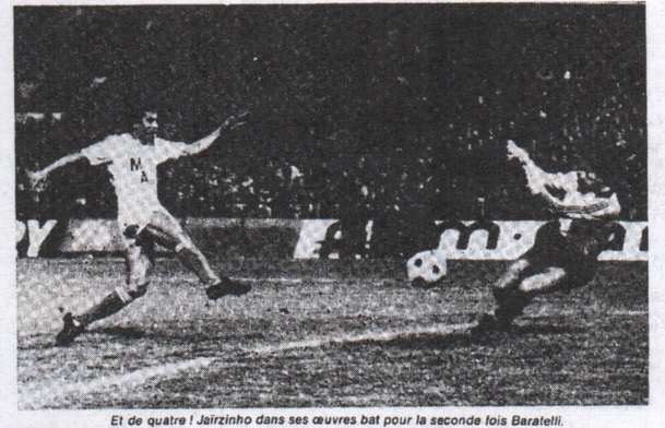Pour ouvrir le jeu, rien ne vaut de pousser la porte dès le coup d'envoi. Alors que l'on pouvait redouter un match fermé, les Niçois ayant mobilisé tous leurs arrières, le but d'Albaladejo marqué dès la 15e seconde modifia du tout au tout les données de la partie. Un but pareil est chose rarissime. Entre le coup de sifflet initial de l'arbitre et sa réalisation un seul joueur niçois avait touché le ballon : Adams qui, de la tête, le repoussa dans les pieds d'Albaladejo. Nous avons beau fouiller notre mémoire, c'est du presque jamais vu. LE BONUS À LA MI-TEMPS Ce but obligea les Niçois à essayer de jouer l'offensive, dans un style qui, s'il est parfois brillant, n'est pas très économique. Pour l'O.M. qui hier soir était habité par l'inspiration brésilienne, ce fut une bénédiction. Paulo Cezar et Jairzinho ne sont jamais aussi dangereux que quand ils nous ont du champ devant lui, même si ce champ n'est pas exactement un boulevard. De fait, alors que Nice réalisé l'un de ses meilleurs matches de la saison, et que l'on voyait les maillots rouges envahir souvent le camp des blancs, l'O.M. à chacune de ses attaques, mettait la défense visiteuse dans ses petits souliers. Un penalty signé Paulo Cezar, un but accrobatique Victor Zvunka - Jairzinho : le bonus était déjà acquis à la mi-temps et la cause entendue. Il est seulement dommage que dans cette symphonie, à laquelle les Niçois comme Eriksson, Huck et Isnard avaient grandement participé, Buigues ait tenu à ajouter bien inutilement un coup de "grosse-caisse". NICE JUSQU'AU BOUT La deuxième mi-temps se poursuivit sous le signe du spectacle, devant un public qui, rassuré par la large victoire de son équipe en arrivait à applaudir les meilleures actions des Niçois. Comme la première mi-temps, cette deuxième période débuta sur un coup de foudre ; un tir de Paulo Cezar seulement renvoyé par Baratelli, ce qui permit à Jairzinho toujours à l'affût, toujours bien placée, d'ajouter un nouveau but à son total, le quatrième de la soirée. Pour les techniciens, nous ferons remarquer que cette fois Paulo Cezar, avait tiré de son pied gauche. Là-dessus, ce fut au tour de Charrier d'entrer dans la danse par une série d'arrêts qui coupèrent nette l'élan niçois. |
