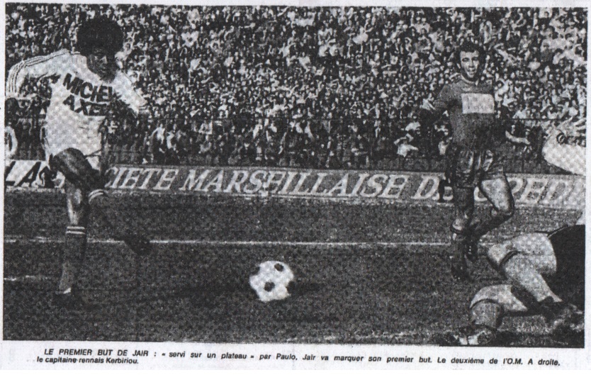 C'était bien parti. Un peu trop bien même. En jetant toutes ses forces dans la bataille pendant les 45 premières minutes et en se montrant par la suite incapable de tenir la distance l'O.M. a fait une mauvaise opération. Il a laissé les Rennais, maîtres du milieu du terrain, terminer sur les chapeaux de roues, il a raté un bonus (un de plus) cent fois à sa portée et que l'on croyait acquis à la 53e minute, et surtout (les Français, c'est bien connu, ayant la mémoire courte) laissé le public, son public sur sa faim. Il n'en reste pas moins vrai que tout bien pesé (30 minutes d'à peu près contre une heure d'exploit technique agrémenté de trois buts) le bilan doit être considérée comme positif. Pour avoir critiqué le onze marseillais lorsqu'il le méritait nous sommes aujourd'hui à l'aise pour lui trouver de larges circonstances atténuantes. Retenons donc seulement les 60 premières minutes. Une heure pendant laquelle nous avons vu évoluer l'O.M. que l'on aime. Que l'on aime un peu, Pokou passionnément, selon que l'on soit neutre, simple supporter ou fanatique. Cet O.M. là a tenu les promesses qu'avait fait naître le match joué contre Reims. Ces promesses qui s'étaient concrétisées à Bordeaux, mais dont on attendait la confirmation. Tout comme un chacun nous avons vibré aux exploits d'un Jair ou d'un Paulo. Deux garçons étonnants lorsque que tout leur être est fixe sur un seul et unique but : la victoire de leurs couleurs. |