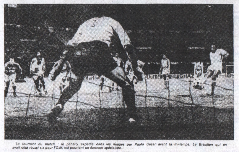 Est-il possible qu'un match de football ait à ce point de visages aussi différents ? Ets-il possible qu'une équipe aussi brillante que ce fut l'O.M. en première mi-temps, en soit réduite à trembler pour laisser ensuite un point à son adversaire ? Est-il possible, enfin, que Paulo Cezar, le roi des tireurs de penalty manque une occasion aussi royale ? Voilà les trois réflexions qui nous sont venues à l'esprit alors que M. Vautrot sifflait la fin d'une rencontre qui a justifié en tous points sa qualité de derby. Et l'O.M. naturellement a gaspillé sans avoir jamais démérité, empressons-nous de l'ajouter, une de ses dernières chances de coiffer son grand rival stéphanois sur les poteaux. UN TIR DANS LES NUAGES : LE TOURNANT Toutes les conditions étaient pourtant réunies pour que l'équipe marseillaise se sente survoltée à l'heure du coup d'envoi. Les Olympiens savaient depuis la veille que Saint-Étienne avait été battu à Lyon. Il suffisait d'un tout petit succès pour les mettre directement sur les talons des Stéphanois à une seule longueur. Une victoire à bonus leur aurait même valu la première place. Mais c'était un rêve que les uns et les autres n'avaient osé caresser, du moins ouvertement. Il était d'ailleurs bien placé pour savoir que ces "Crocodiles" nîmois, seraient de coriaces adversaires. Eh bien, nous l'affirmons sincèrement, cette victoire à bonus, l'O.M. l'eut pour ainsi dire au bout du pied. Et comme nous avons ajouté que ce pied et celui de Paulo Cezar, vous conviendrait que tous les atouts étaient dans le jeu marseillais. Hélas ! Quelle mouche avait piqué le Brésilien, lui qui n'avait jamais manqué une pareille aubaine. C'est la question que nous ne finissons pas de nous poser et sans doute, ne serons-nous pas les seuls. Toujours est-il que Paulo, qui tire ses penalties en finesse à l'ordinaire, décida cette fois de mettre toute la gomme. Mais la balle s'envolait dans les nuages. C'est fini ! Nous en étions alors à la 45e minute, et l'O.M. venait de manger son pain blanc... UNE PREMIÈRE MI-TEMPS DE RÊVE Cet échec du tireur d'élite est d'autant plus désolant que lui-même avait joué une première mi-temps marquée de bout en bout par une classe éblouissante, à l'image d'ailleurs d'une équipe marseillaise qui avait monopolisé le ballon en multipliant les occasions de but. Pour donner une idée de cette domination, Charrier n'avait touché aucune balle pendant les quarante-cinq premières minutes, si ce n'est sur des passes de ses partenaires. |