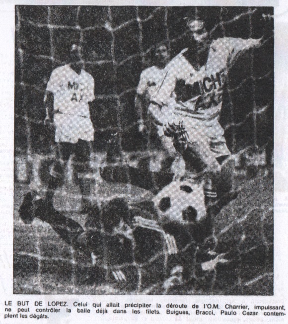 SAINT-ETIENNE - Eh oui ! Pour l'O.M. à Saint-Étienne les matches se suivent et se ressemblent. Battue une nouvelle fois et sans rémission par son éternel rival, l'équipe marseillaise, il faut bien le reconnaître, a trouvé son maître, hier soir, sur le stade Geoffroy Guichard. Les Stéphanois mirent une bonne mi-temps à prendre la mesure de leurs adversaires, mais, cette période passée, ils firent la preuve par A plus B qu'ils étaient bien les plus forts. Personne désormais ne pourra plus leur contester leur titre de champion de France. Pour l'O.M., courageux, mais finalement dépassé, eh bien, il reste à assurer si possible la seconde place et ma foi, courir après sa revanche en Coupe de France. LE BUT DE L'ESPOIR Pourtant, soyons logique, nous avions cru à l'exploit. Durant toute la première mi-temps, tout le monde avait compris que ce match n'était pas conseillé aux cardiaques. Emporté par un public survolté, les "verts" avaient d'entrée et comme prévu, annoncé la couleur, si l'on nous pardonne cet aparté. Toutefois, dans la cuvette bouillante du stade Geoffroy Guichard, les Marseillais eurent le mérite de prouver à ses milliers de spectateurs hargneux et un rien railleurs, qu'ils n'étaient pas venus non plus pour se laisser faire. Nous avions même l'heureuse surprise de voir l'O.M. tenir la dragée haute aux Foréziens. Tant sur le plan du jeu collectif que de celui de l'engagement, les Olympiens répondaient du tac au tac, bref, les occasions étaient partagées et la rencontre justifiait sa qualité de duel au sommet. Il faut préciser que Jules Zvunka avait conseillé à Bereta le poste d'ailier gauche et dans cette position le Stéphanois allait causer bien du tourment à son ex-équipier Bathenay, chargé de sa surveillance. Sous son impulsion, l'O.M. allait même parvenir à ouvrir la marque avec une belle maîtrise, une telle autorité, qui était normal, à ce moment-là, de caresser les plus belles (nous devrions dire les plus folles) espérances. Un centre de Victor Zvunka, de l'aile droite, parvenait sur la tête de Paulo Cezar, qui trompait imparablement Curkovic. Nous en étions alors à la 18e minute et l'O.M. était parvenu à se hisser pour un temps à la première place du classement. LE DÉBUT DE L'AVALANCHE Hélas, l'euphorie dans le camp marseillais ne fut que de courte durée, Patrick Revelli réceptionnant à son tour un centre, de la gauche cette fois, réussissait à venir tromper Charrier à bout portant dans l'explosion de joie que l'on devine. |