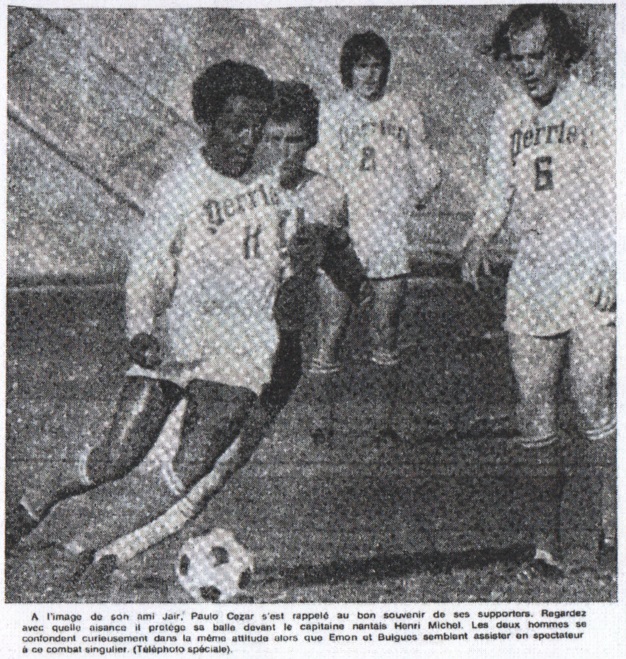 Pour le reste, la bonne volonté de tout le monde, la grande partie de quelques-uns et, il faut le dire, quelques maladresses nantaises ont fait la différence. Je ne veux pas faire ici la fine bouche, mais je regrette pourtant qu'à 4 à 0 nous n'ayons pas fait circuler un peu plus habilement le ballon. Mais n'y pensons plus. L'important est que mes garçons arrivent à se persuader que le travail paye toujours, un jour ou l'autre. Voilà qui est fait. Tant mieux". Les autres joueurs, évidemment, étaient radieux, surtout Jairzinho qui avait marqué sa rentrée de brillante façon : "Depuis le temps que je me morfondais sur la touche, je vous avoue que j'aurais payé pour jouer un match. L'entraîneur m'a fait confiance aujourd'hui, dans un match important. Je crois ne pas avoir déçu. Désormais, rassuré sur mon état physique, je devrais progresser au fil des matchs". Bereta donnait son opinion : "Un résultat qui va redonner confiance à nos supporters et qui va nous redonner confiance à nous-mêmes, ce qui est peut-être le plus important". Tout en se rhabillant, Trésor, le capitaine, précisait : "Nous avons eu peur une quinzaine de minutes, mais par la suite tout s'est passé sans gros problèmes. Tant mieux". "Ne cherchons pas midi à quatorze heures", affirmait pour sa part Bracci, nous avons gagné pour une simple et bonne raison : parce qu'aujourd'hui nous étions les plus forts". Emon, lui, confirmait ce que nous avions cru voir depuis les tribunes, à savoir que son but fut un modèle de sang-froid : "Lorsque Mickey (Albaladejo) m'a dit : c'est ta balle !, j'ai vu que j'étais en excellente position ; j'ai alors visé le coin... et je l'ai attrapé" ! Nous laisserons la conclusion à M. Vernet : "Depuis le premier jour j'avais annoncé la couleur, en faisant remarquer qu'il était beaucoup plus utile pour nous d'affronter une équipe technique comme Nantes, qu'une autre formation présumée plus faible, mais qui aurait joué le match de sa vie. Les événements m'ont donné raison. Désormais, en Coupe, et même en championnat, tous les espoirs nous sont permis". A. de R. |