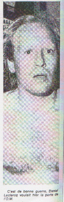 J'ai assisté à une rencontre à double visage", a dit Stéfan Kovacs à la fin de la partie "Pendant vingt minutes, l'équipe marseillaise, survoltée, a fait une démonstration de force, et je crois que ses trois buts étaient la conséquence logique de sa supériorité. Ensuite, les Lensois ont pris la direction des opérations, et avec un brin de réussite ils auraient pu, à tout le moins, obtenir le match nul. C'est dire que l'O.M. a beaucoup mieux commencé qu'il n'a terminé". - Que pensez-vous de vos internationaux "Dans l'ensemble, et sans citer de noms, je crois qu'ils n'ont pas encore tous leur pleine condition physique. Mais je ne perds pas de vue que la saison ne fait que commencer." DANIEL LECLERCQ L'O.M. EN PROGRES Visiblement, Daniel Leclercq été déçu de la courte victoire de son équipe. "Nous avons été un peu trop naïfs en première mi-temps nous a déclaré l'ancien olympien, alors que notre équipe dominait, nous nous sommes exposés aux contres de nos adversaires. Dommage, je pense que sans cela nous aurions pu enlever la victoire." - Comment avez-vous jugé l'O.M. ? "Sans aucune hésitation possible, je dis que cette équipe là est en progrès par rapport à la saison dernière. Son jeu collectif est beaucoup plus fouillé. Et ajoutez aussi que les Marseillais ont trouvé en la personne de Yazalde un digne successeur à Skoblar. Emon et Boubacar ont été également à la hauteur. Maintenant, pour dire si l'O.M. sera champion de France, il faut attendre la suite. En tout cas la première impression est excellente." J.F. |