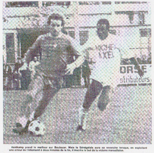 Lorsque, à la 88e minute, nous avons vu Paul Heidkamp mettre tout en oeuvre pour essayer de dribbler son gardien Gili, qui avait pratiquement la balle dans les mains alors que Boubacar arrivait à toute allure, nous avons eu nettement le pressentiment d'un drame. Pourquoi donc ? Eh bien, tout simplement parce qu'une bévue possible de l'un des meilleurs joueurs de championnat nous paraissait constituer un véritable point d'orgue pour une rencontre disputée sous le signe des erreurs défensives grossières. Nous ne pouvons supposer que, dans la pénombre qui tombait sur le stade, il ne vit pas arriver son adversaire. Que voulut faire exactement l'excellent joueur allemand ? Probablement ne pas perdre de temps ; intention louable à quelques poignées de seconde la fin. En somme reprendre le ballon à Gili avant qu'il ne l'ait contrôlé et éviter la sempiternelle "cérémonie" de la remise en jeu et amorcer, après avoir pivoté dans son style puissant, une ultime contre-attaque. Mais il rata complètement son geste technique, au point de s'affaler sur son malheureux partenaire qui venait d'être trahi par l'un des siens pour la seconde fois de l'après-midi. Boubacar, opportuniste, se faufila, s'empara du ballon et s'en alla la loger dans le but vide, justifiant sa réputation désormais solidement établie d'ouvrier, non pas de la dernière heure, mais des cinq dernières minutes. Nous avons dit que la partie, dans son ensemble, avait été marquée par des erreurs grossières, dues probablement à l'état du terrain éprouvé par un long et violent orage. On avait vu tout d'abord Migeon rater son intervention sur un corner de Djazic. Pour faire pendant Gili repoussait un tir de Emon vers Yazalde laissé complètement libres de ses mouvements. Puis c'était au tour de Cazes de marquer son contrôle ou son dégagement et de laisser filer dans son but un corner direct de Emon. Ensuite, Migeon était un peu court dans sa sortie et se faisait battre de la tête par Djazic, à son grand désespoir. On avait même vu, en début de partie, signe prémonitoire, Heidkamp manquer une passe facile et donner la balle à Boubacar déjà qui filait au but, mais lui rendait la politesse en tirant à côté, ce qui fit dire à votre voisin : "Maintenant, on est tranquille ! Paul l'a faite sa c..." Pronostics démenti par des événements, comme vous avez pu le constater. Et l'après-midi s'achevait dans le tumulte, certains supporters bastiais déçus voulant faire payer leur véritable déconvenue aux joueurs marseillais, comme si ces derniers y étaient pour quelque chose ! Louis DUPIC |