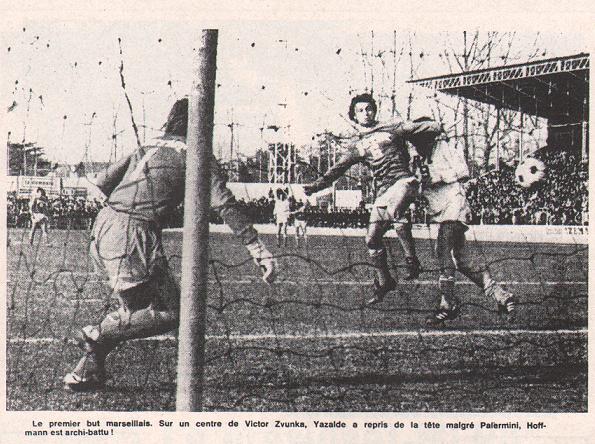 Comment ils ont joué MIGEON : Nous avons déja souligné par ailleurs, quelle fut la part prise par le gardien marseillais dans cette première victoire en Coupe. Migeon fut sans conteste le meilleur joueur de la rencontre. GRANSART : Sans prendre de risques inutiles, le jeune défenseur a confirmé devant Avignon les bons débuts accomplis contre Reims. Roland continue sa progression de façon encourageante. TRESOR : Marc Bourrier, après le match a tenu personnellement à lui rendre hommage. C'est à dire si le capitaine olympien s'est acquitté de sa tâche avec le bonheur qu'on lui connaît. VICTOR ZVUNKA : Un bon point aussi à l'actif de Victor. Intraitable en défense, il eut le mérite, grâce à un très bon centre, d'obtenir le premier but marseillais. BRACCI : Rien à dire de particulier sur le défenseur international, qui sut livrer un match efficace, irréprochable en tout cas sur le plan défensif. BUIGUES : Le joueur le plus constant dans l'entrejeu. Sobre, appliqué, Robert sut se trouver au point chaud de la bataille FERNANDEZ : Jules Zvunka décide de le remplacer par Nogues en deuxième mi-temps. Le jeune joueur n'a pas démérité, mais il est évident qu'il cherche en ce moment son deuxième souffle après avoir été pas mal sollicité MARTINEZ : C'est un peu la même remarque que nous ferons à son sujet. Jean-Marc, dont c'était le retour en équipe première, a donné l'impression de manquer de rythme, ce qui au demeurant est assez normal. EMON : Alier droit ou deuxième avant centre ? Dans un role assez mal défini, il fut moins en vue qu'à l'ordinaire. A croire que la meilleure place d'Albert, dans le contexte actuel, se situe sans doute à l'aile gauche. YAZALDE : A la mauvaise place et de surcroit assez mal soutenu. Hector ne renonça jamais. Il fut récompensé en marquant le premier but, déterminant en l'occurence comme chacun sait. BERETA : Georges, pour sa par, inscrit le but libérateur d'un très beau tir du gauche. Même s'il n'a pas encore retrouvé la grande forme, il est difficile de lui en demander d'avantage. NOGUES : Il n'est resyeé qu'un quart d'heure sur le terrain et, dans ces conditions, il n'est pas possible de porter sur lui un jugement valable. AVIGNON SANS REALISATEUR Que dire, d'autre part, sur l'équipe avignonnaise, sinon qu'elle a crânement tenté sa chance avant de s'incliner devant un adversaire hiérarchiquement supérieur. Dans ses rangs : Giordani, Chiazzaretian, Michel Jean, Leroy, auteur du but et Perles, qui gagnerait toutefois à être moins impulsif, ont été les éléments les plus en vue. Le principal défaut de la formation vauclusienne est, hélas, un manque de réalise. Il est clair qu'avec un ou deux buteurs de plus dans sa ligne d'attaque, Avignon aujourd'hui n'en serait pas là.