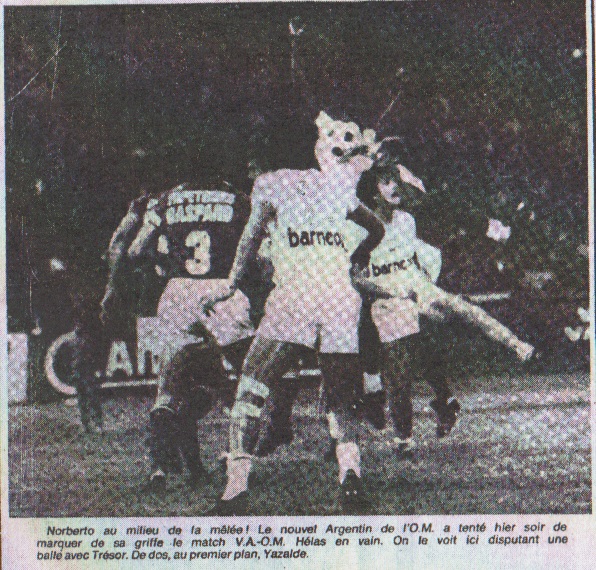 Pendant près de 45 minutes, le jeu fut à sens unique, à peine entrecoupé par quelques timides contre-attaques de l'O.M. qui ne mirent jamais vraiment Delachet en péril. Et l'inévitable se produisit. Petit à petit, Jeskowiak d'abord, Maillard, ensuite et Vestraete enfin, (3 à 1 pour Valenciennes). Sur ce que nous venions de voir, et exception faite du premier quart d'heure de la partie c'était logique. L'O.M. TROP DE TECHNICIENS. Il est bien évident et tout le monde sera d'accord sur ce point que l'O.M., souffrit hier, d'un excès de technicité et d'un manque de combativité dans la lutte pour la dispute du ballon. Au milieu du terrain, dans la plupart des tackles, ce sont les Valenciennois qui prirent le dessus, ce qui leur permit de lancer et relancer de vives attaques. Pourtant, nous ne faisons que le répéter, Trésor et Migeon se firent un match exceptionnel. Trésor fut une véritable terreur pour le public valenciennois. Quand il était monté à l'attaque, on entendait les spectateurs crier aux joueurs de Valenciennes : "Profitez-en, il n'est pas là !" Mais un joueur, aussi valeureux soit-il, ne peut pas faire toute une équipe et, malgré Migeon, lui aussi exceptionnellement brillant, l'O.M. ne pouvait que s'incliner. Hier soir, c'est essentiellement son milieu de terrain, formé d'Alonso, Albaladejo et Fernandez, qui a été le point le plus faible de l'équipe. Tout au plus, ces joueurs peuvent-ils se plaindre de n'avoir pas été assez soutenus dans l'indispensable lutte pour le ballon pour les attaquants de pointe. Bereta, Emon et Yazalde ont fait, quand leur équipe pouvait reprendre le dessus quelque bonnes choses. Emon, en particulier, a été parfois très brillant et Bereta, en début de match, s'est montrée à son avantage. Mais tout cela n'est pas suffisant le football moderne : il faut se battre de bout en bout, s'accrocher à toutes les balles pour réussir une saison complète. Il appartient donc à l'O.M. de tirer les leçons de cette défaite et pour terminer, nous féliciterons toute l'équipe de Valenciennes qui, sans grandes vedettes dans son équipe, exception faite peut-être de Six, a su jouer fort bien, collectivement et avec un engagement de 90 minutes. Chapeau ! Maurice FABREGUETTES |