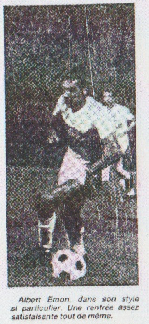 IL FAUDRA LE REVOIR Sur l'ensemble de cette rude et très vivante partie de championnat, il est certain que l'on ne serait juger Alonso. Il arrive en ligne directe d'Argentine ou le football se joue de façon différente et il lui faut encore s'adapter à notre équipe est à notre jeu. Ce que l'on a pu remarquer aujourd'hui c'est que la meilleure façon de se rendre utile à l'équipe est dans ses passes généralement exécutées du gauche. Il a une claire vision du jeu et il sait voir ses partenaires très rapidement et leur passer le ballon de même. Dans la partie défensive de son rôle, il a été complètement inexistant. Nous pensons qu'il s'améliorera, mais aujourd'hui il ne réussit jamais à prendre le ballon franchement à un adversaire. Au contraire, il se le fit prendre souvent dans les pieds. On ne sait pas encore s'il joue de la tête ou pas. En quatre-vingt-dix minutes, il sauta une seule fois pour reprendre de la tête une balle au bond. Il ne paraît pas non plus extrêmement rapide. Nous ne l'avons jamais vu tenter un vrai démarrage et ses dribbles ne conduisirent à rien. Quant à sa frappe de balle, elle est encore à découvrir. Dans tout le match il tira deux fois aux buts, une fois sur coup franc, beaucoup trop haut, et une fois en cours de jeu, mais de façon très molle et à côté. Bref, on ne peut pas juger Alonso sur ce seul match. Il est certain qu'aujourd'hui il n'a rien apporté à l'équipe et que Noguès à sa place aurait été d'une plus grande utilité. Mais nous savons depuis longtemps qu'il faut se garder de juger un footballeur sur la première impression. Au demeurant, sur ce que nous avons vu nous pensons qu'Alonso rendra de précieux services à sa nouvelle équipe, surtout par son sens du jeu. Mais, pour le moment, il serait excessif de l'assimiler à une vedette. Il n'a en rien rappelé, hier soir, ni Skoblar ni Paulo César... M.F. |