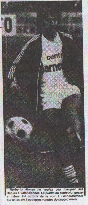 Nous avons suivi le jeune Alonso durant toute la partie. Vu du haut des tribunes, il paraît assez frêle et souvent, dans la lutte homme contre homme pour la possession du ballon, il se retrouva sur le dos ou sur les fesses. Mais la première impression est loin d'être mauvaise, il s'agit indiscutablement d'un joueur de charme, d'un très fin footballeur, mais qui a encore besoin de s'adapter au football français. En première mi-temps, nous l'avons suivi de très près. Voici quelles furent ses principales actions : A deux minutes du coup d'envoi, il réussit à esquiver la feinte de son adversaire direct Neubert, et passa sèchement et de façon très précise à Emon. Dans ce geste, il y avait élégance, classicisme et précision. Vers la 5e minute, le long de la touche, il réussit, de son pied gauche, une passe facile à Fernandez. À la 7e minute, il tira à une vingtaine de mètres au-dessus, un coup franc pour l'O.M., de face, à une trentaine de mètres des poteaux de Valenciennes. À la 10e minute, il réussit une passe redoublée à Bereta qui mit l'ailier gauche olympien en position de débordement. À la 26e minute, nous le vîmes rater sa première passe. À la 31e minute, sur une balle au bond, il essaya de frapper le ballon de la tête, sans grande réussite. Sa meilleure action de loin se situé à la 40e minute : du milieu du terrain, de son pied gauche, qui paraît être son arme principale, il réussit une remarquable passe en profondeur en direction de Yazalde, mais ce dernier se fit prendre de vitesse par les défenseurs de Valenciennes. En deuxième mi-temps, on a pu noter à l'actif d'Alonso une passe vers la gauche, exécuté de son pied droit, passe très précise et dans le sens du jeu. En fin de match, à la suite d'un crochet intérieur, il tira au but mais son tir très mou passa à côté de la cage. Le reste du temps, devant le déferlement offensif de Valenciennes, il ne fut d'aucune utilité à son équipe, se contentant de se déplacer à droite et à gauche, mais ce faisant impitoyablement tacler chaque fois qu'il était en possession du ballon ou qu'il se préparait à le recevoir. |