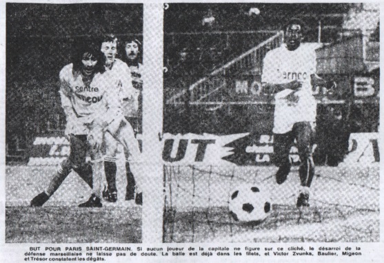 La seule ressemblance avec le match de Nîmes est qu'il faisait presque aussi froid. La grande différence fut que le Paris Saint-Germain n'était pas venu au Stade Vélodrome avec l'intention de faire de somptueux cadeaux à l'O.M. De ce fait, la jeune attaque olympienne eut du mal à exprimer ses talents. Pourtant, et c'est ce qui fait tout le charme du football, l'équipe marseillaise réussit à arracher la victoire à la 89e minute à l'issue d'une deuxième mi-temps marquée par une domination massive des Parisiens. Ce but de la dernière minute fut même très joli, un départ de Bracci sur la gauche, lancé par Emon et un centre repris de pleine foulée par Zlataric et qui laissa sur place l'excellent Pantelic. Un but de mouvement et qui reflétait assez mal la physionomie de cette deuxième mi-temps. Pendant 45 minutes, les spectateurs frigorifiés sur les gradins du Stade-Vélodrome avaient vu leur équipe se faire malmener par son adversaire. Le milieu de terrain olympien ayant complètement craqué, à l'exception de Bereta, l'équipe parisienne menait le jeu à sa guise et les attaques succédaient aux attaques. On commençait à penser que le match nul était une bonne chose pour les Olympiens quand se produisit, in extremis, le coup de théâtre que vous savez. Tout est bien qui finit bien donc, mais il faut objectivement reconnaître que l'O.M., hier soir, a eu une très grande chance. Il ne méritait pas, malgré toute sa bonne volonté son courage, de battre une équipe parisienne qui lui paraît foncièrement supérieure dans tous les domaines du jeu. Mais enfin, c'est le football et, en définitive, seul compte le résultat : 2 points de plus pour l'O.M. LA PREMIÈRE MI-TEMPS AVAIT TENU SES PROMESSES L'O.M., nouvelle méthode, s'était appliqué à faire courir le ballon et y réussit assez bien. Mais en face, le Paris Saint-Germain jouait sensiblement de la même façon. Technique et occupation du terrain plus rationnelle que celle de son adversaire. Il devait en résulter une première période très vivante, de bonne qualité et marquée par un certain équilibre. Les Parisiens marquèrent les premiers grâce à Dahleb, le capitaine parisien prit le dessus sur Trésor au niveau du poteau gauche de corner avant de rabattre le ballon au centre. Que se passa-t-il alors ? Est-ce un peu M'Pele qui marqua le but ou un défenseur olympien, en l'occurrence Baulier ? Peu importe dans le fond puisque le ballon roula inexorablement au fond de la cage olympienne. La réplique de l'O.M. se situa un peu plus tard. Sur coup franc Emon, ne voyant pas l'ouverture directe, passa à Bracci sur la gauche. Ce dernier avança et, étirant au maximum ses grands compas, loba tout simplement Pantelic. Entre-temps Pantelic, mais involontairement K.O. par Trésor sur un corner, resta quelque minute au tapis. Une fois encore le public manifesta son manque d'esprit sportif en sifflant et en hurlant le joueur touché. Combien de fois faudra-t-il répéter que le football n'est pas la guerre. Enfin 1 à 1 à la mi-temps c'était logique. |