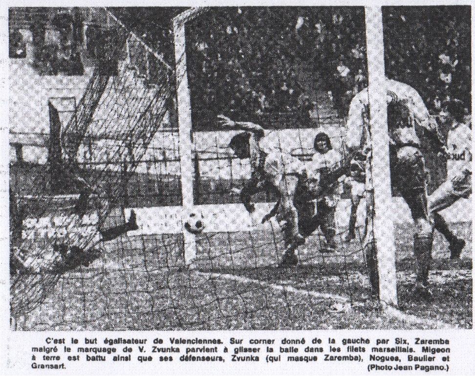 QUARANTE-CINQ MINUTES POUR RIEN Si la première mi-temps avait été assez honorable, la deuxième période sombra dans la confusion et les erreurs en tous genres. L'énervement gagnant progressivement les deux équipes n'arrangea rien. Le sommet de cet énervement se situe à la 75e minute, quand Coumba étendit Yazalde au sol d'un magistral coup de poing. Vendetta sans doute, mais il est certain que ce geste inconsidéré méritait l'expulsion. La plus grande peur pour l'O.M., ses supporters l'éprouvèrent quand Zaremba bénéficiant d'une série d'erreurs de la défense olympienne, se trouva seul devant Migeon et tira à côté. Mais Victor Zvunka, un peu plus tard, à la suite de la meilleure action collective de l'O.M., échoua lui aussi dans des conditions presque aussi favorables. Le dernier quart d'heure, à onze contre dix, ressembla par ses nombreuses mêlées, ses chutes et ses irrégularités, à un mauvais match de rugby. ALONSO S'EST BATTU Valenciennes, comme on s'y attendait, a présenté un ensemble homogène, à l'esprit de corps très élevé, mais de valeur simplement moyenne. Dans ces conditions très difficiles, Six montra quelques facettes de son talent. Pour ce qui est des autres, la citation ne peut être que collective, avec tout de même une mention au Marseillais Delachet. À l'O.M., si Migeon a été bousculé sur le but de Valenciennes, il faut bien dire que ce sont généralement les gardiens qui bousculent les attaquants sur les corners. La défense, très gênée par l'état du terrain, a souvent cafouillé de façon fort dangereuse. Au milieu du terrain, dans la mesure où il ne lui est pas demandé de défendre, Alonso fut le grand satisfaisant. On peut lui reprocher de ralentir le jeu et de manquer absolument de puissance dans ses tirs, mais enfin il s'est battu, il s'est accroché et les meilleures actions techniques de l'O.M. peuvent être portées à son actif. N'en faisons pas Jésus-Christ tout de même ! En attaque, ce fut un nouveau fiasco Yazalde, le plus dangereux pour Valenciennes, bien entendu étant Emon. Mais lui aussi ne doit pas être comparé à un dieu du football. Bref, en attendant des temps meilleurs, il faut se contenter de ce que l'on a. Maurice FABREGUETTES |