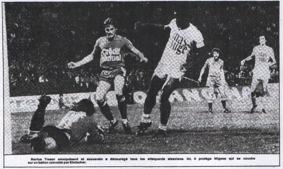 Quant à M. d'Agostino, il avouait : "Ce ne fut pas facile, mais que voulez-vous, l'important était d gagner. Je regrette que le prochain match soit dans trois jours car nous risquons d'avoir des problèmes du côté des blessés, mais ne nous plaignons pas puisque nous jouerons à domicile contre Valenciennes, ce qui est tout de même, à première vue, moins dangereux que de jouer par exemple à Nice ou à Saint-Étienne". Enfin, voici recueillies en vrac quelques déclarations des joueurs. LINDEROTH : "Ce fut un match qui nous a posé beaucoup de problèmes, notamment parce que les Strasbourgeois jouaient groupée et que nous avons eu beaucoup de difficultés à développer notre jeu, un jeu qui s'adapte mieux aux larges espaces. C'est vrai que j'ai souffert de ma cheville, mais je ne pense pas que la participation au match de vendredi soit pour autant compromise". Voilà un état d'esprit qui change singulièrement avec celui de quelques étrangers portant naguère le maillot blanc et qui avaient tendance à raisonner de façon opposée. BACCONNIER : "J'ai beaucoup souffert durant la première demi-heure. Par la suite, ça allait beaucoup mieux. En fait en deuxième mi-temps, disons que j'avais digéré le match de Lens que j'avais encore dans les jambes en première". BOUBACAR : "Ce ne fut pas, loin s'en faut, une partie de plaisir. Pourquoi ce match que certains considéreront médiocre ? À mon avis, deux raisons essentielles. Parce que d'une part la moitié des joueurs n'avaient plus joué depuis 12 jours, alors que d'autre part, et au contraire cinq d'entre nous avaient un match dans les jambes qui datait de quatre jours à peine". VICTOR ZVUNKA : "On n'a peut-être pas été très bons, cependant on n'a concédé aucun but devant la meilleure attaque française et on compte aujourd'hui deux points de plus à notre actif. Deux points qu'il ne fallait pas perdre puisque, vous avez vu les résultats, nos principaux adversaires ont fait un malheur". FERNANDEZ enfin : "J'ai, à l'image de l'équipe, bien démarré, mais par la suite et sans doute à cause de mes dents - on m'en a arraché trois cette semaine - j'ai pris un sérieux coup de barre en deuxième mi-temps. Heureusement en fin de compte, tout s'est bien passé et au mois de juin prochain on ne se souviendra plus de quelles manières nous avons engrangé ces deux unités qui risquent alors d'être capitales". |