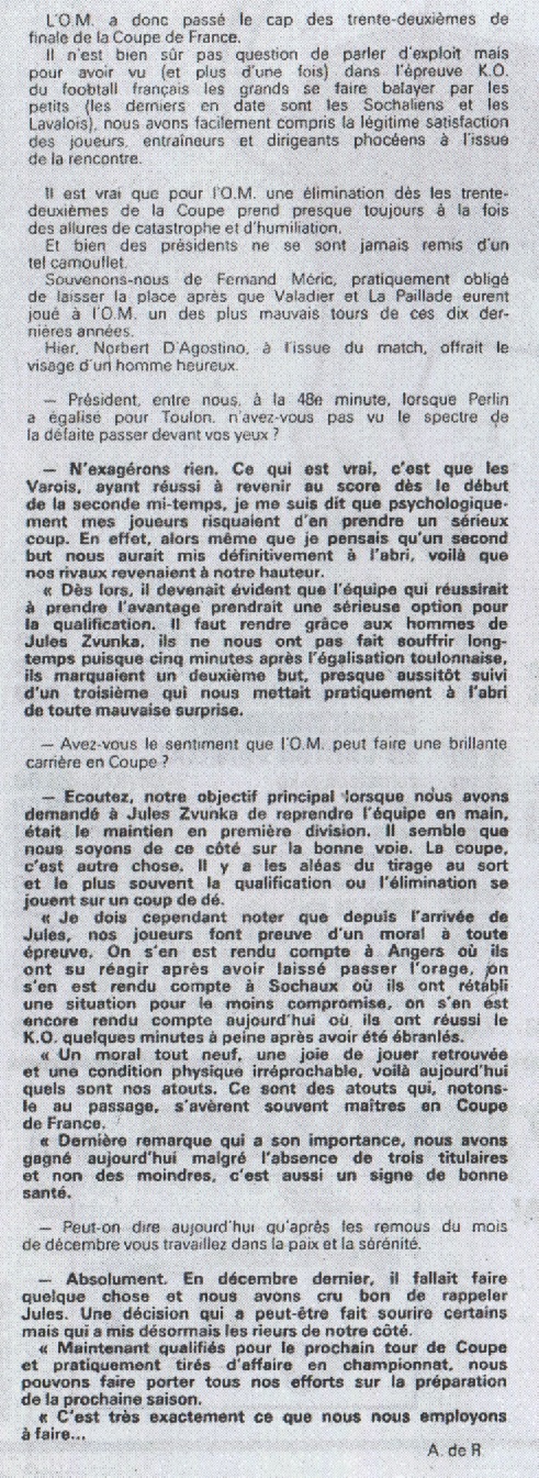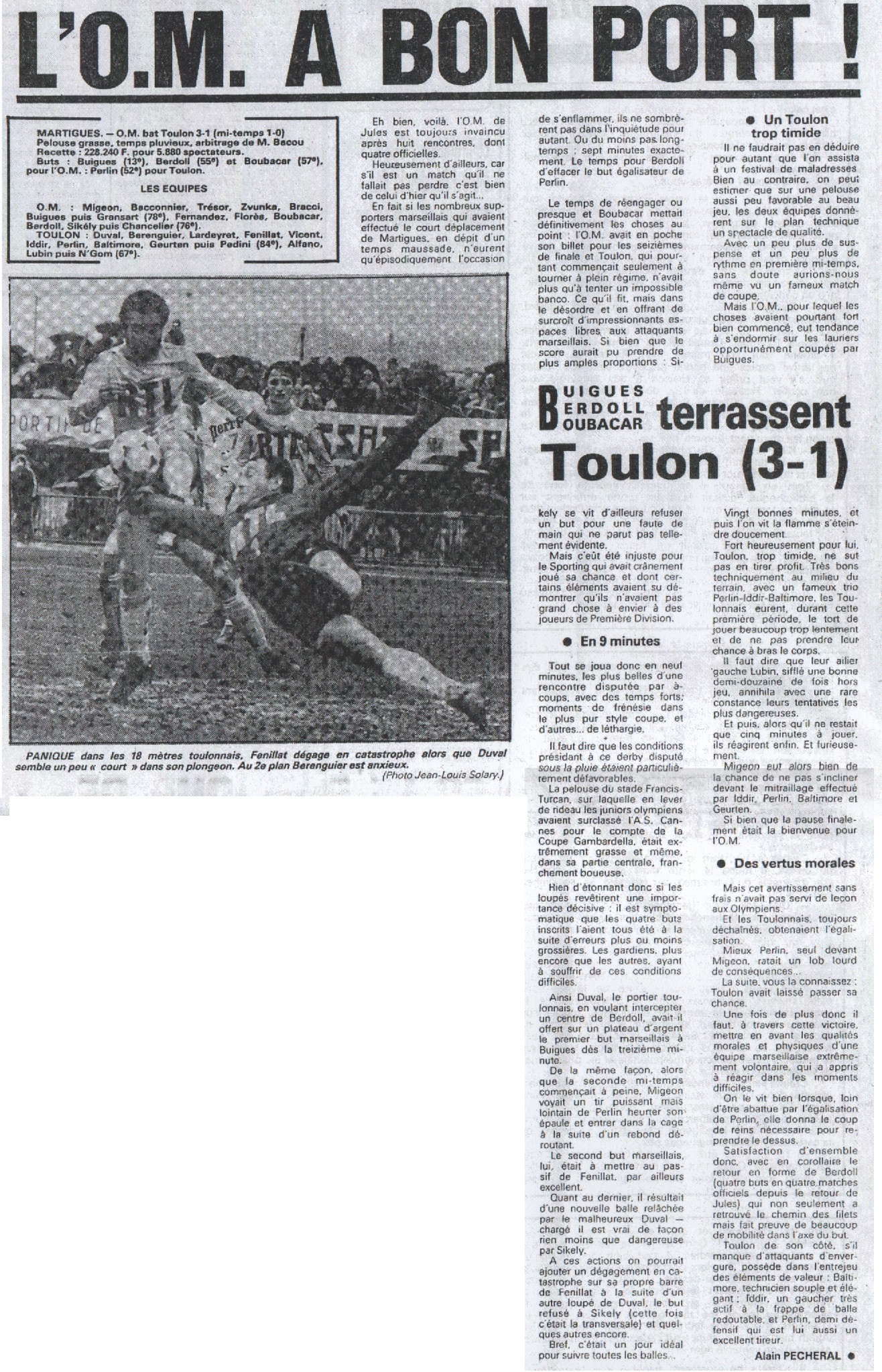 54ème minute de jeu, Berdoll trompant la défense Toulonnaise inscrivait le 2ème but pour l'OM