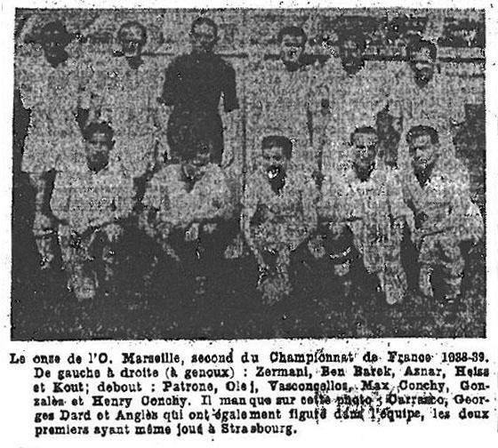 Strasbourg mène actuellement la barque et tour à tour, Keller et Rohr sont dangereux. C'est au tour de Dard de n'avoir pas de chance dans son shoot. Magnin en position de shoot est fauché. Et Gonzalès marque... Pour Strasbourg A LA 37me MINUTE, ROLLAND RECOIT LA BALLE EN POINTE DE ROHR, IL FILE VERS LE BUT DE L'O.M. ET IL SE DEBARRASSE DE LA BALLEEN FAVEUR DE MAGNIN, MAIS GONZALES EN PLEINE COURSE SURGIT ET EMMENE LE BALLON DANS SES PROPRES FILETS Strasbourg, 1 ; Marseille, 0. Deux minutes après, Kohut place un shoot et Dambach réussit à pousser la balle par-dessus les bois alors que le but paraissait acquis. Peu après la fin est sifflée sur le score de 1 à 0 au profit de Strasbourg Trop nerveux, l'O. Marseille Echoue au port La cause est entendue : l'O.M. a échoué au port. Les Olympiens, par leur extrême nervosité, ont diminué leurs chances qui s'annonçaient brillantes. Déjà, leurs premières minutes de jeu Rrent prévoir la suite du match et malgré leur avantage territorial, les avants méridionaux ne donnèrent jamais l'impression de pourvoir forcer les buts de Dambach et ce, malgré leurs nombreux corners qui leur furent dévolus. Patrone étant éliminé du terrain par M. Raguin après une demi-heure de jeu, les espoirs méridionaux s'envolèrent. En Effet, c'est dans ce temps qui resta à jouer que l'imprécision de la méthode marseillaise fut la plus évidente. Les grandes ouvertures qui s'imposaient pour gagner du terrain à dix contre onze et qu'ont essayés les Méridionaux échouèrent régulièrement dans les pieds adverses. Cette nervosité augmenta encore à l'annonce de la mi-temps, de l'avance de Sète devant le Racing. Ceci dit-on constate encore une fois de plus l'âpreté de ce genre de match où l'honneur du titre d'une part et l'honneur tout court de l'autre sont en jeu et aux prises car la partie fut assez décousue au-delà de toute expression et M. Raguin eut toute es peines du monde à garder le matche en main. La grande défense de Strasbourg Citons d'abord les hommes qui se mirent en relief. A Marseille, ils ne sont pas beaucoup : Max Conchy et Olej quand il passa demi, en compagnie de H. Conchy furent les meilleurs "blanc" ; Ben Barek brilla par instants, mais il ne tint pas assez régulièrement son action. A Strasbourg, la défense où Roessler se couvrit de gloire neutralisa ses rudes adversaires. Sbarra, malgré sa petite taille, fut magnifique d'un bout à l'autre de la partie et Rohr se montra très actif. Fritz Keller se montra très actif. Fritz Keller fit une rentrée effacée et Magnin se produisit avec un coeur de lion. Le triomphe de Strasbourg est justifié. |