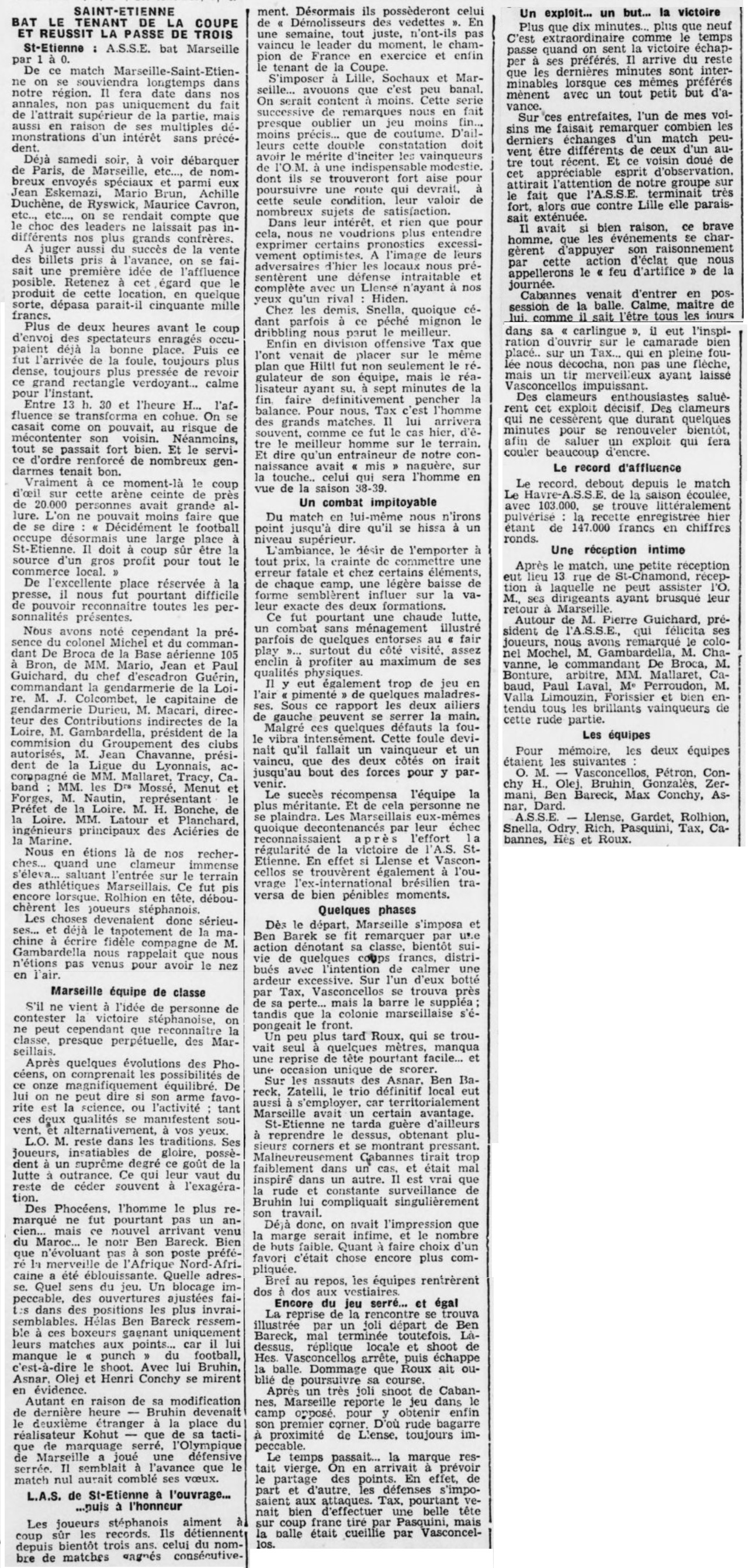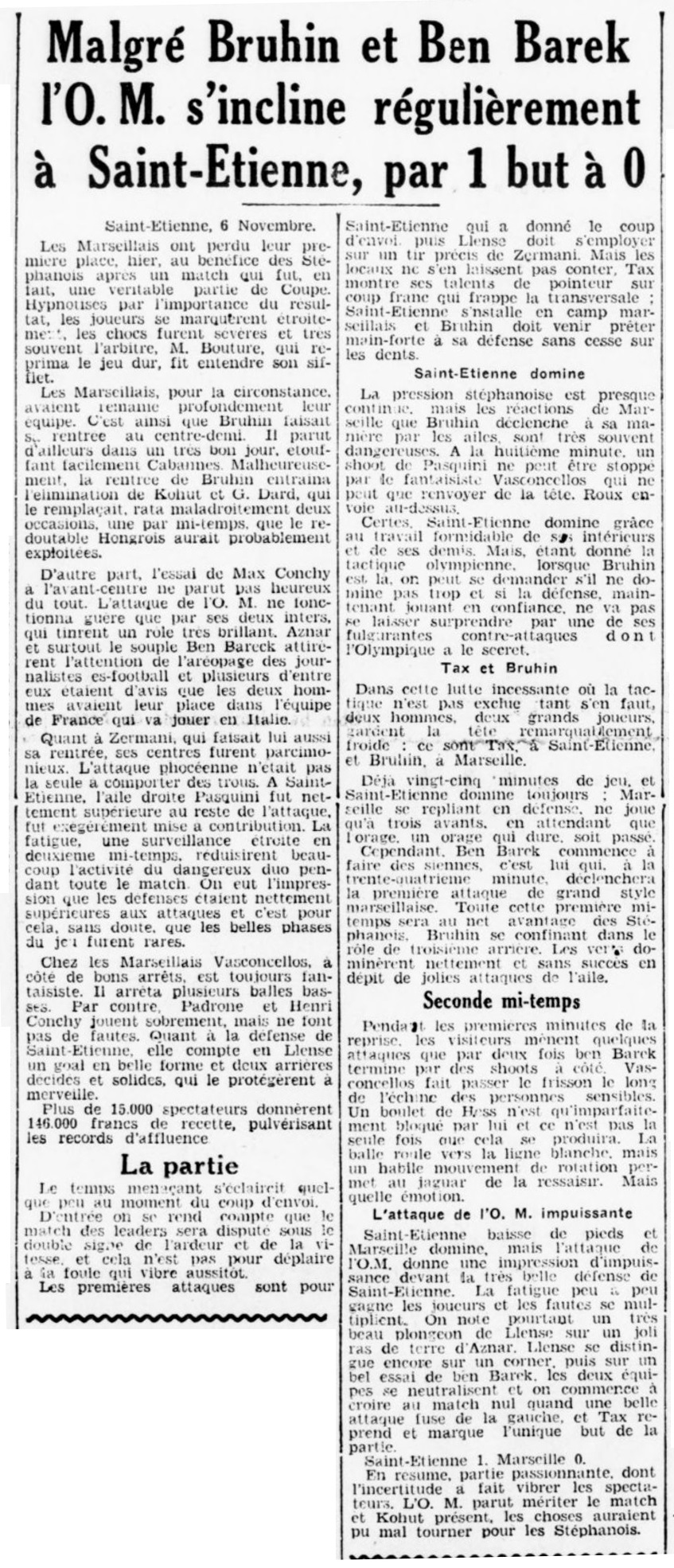 Résumé La Provence Sportive du 07 novembre 1938 |