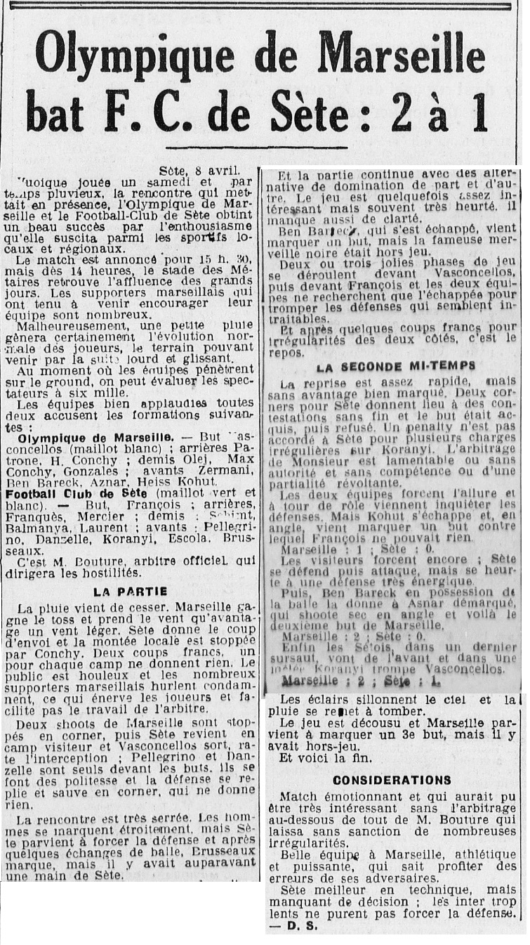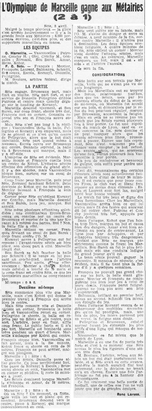 Résumé du Petit Marseillais du 09 avril 1939 |