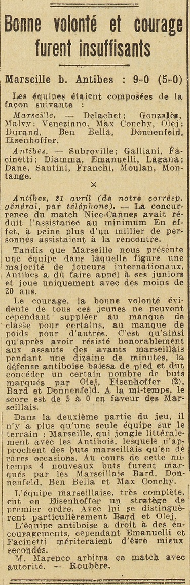 Résumé Le Petit Marseillais du 22 avril 1940 |