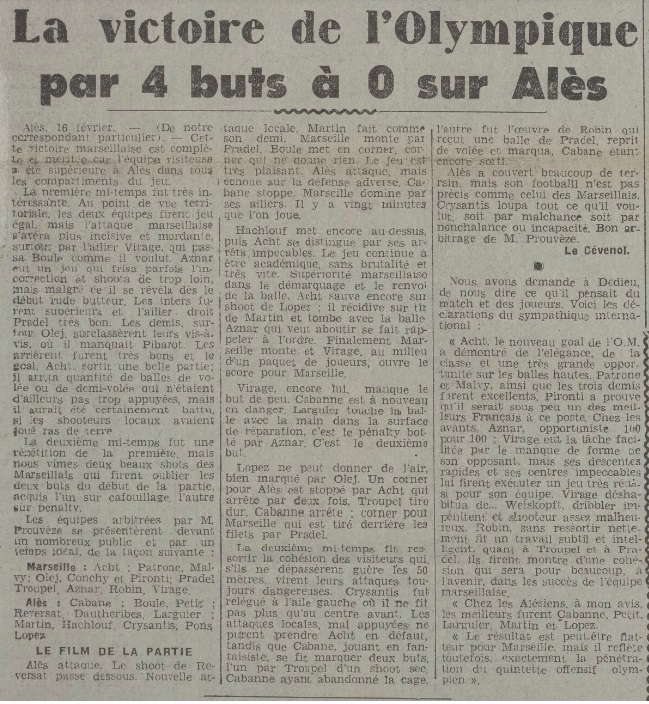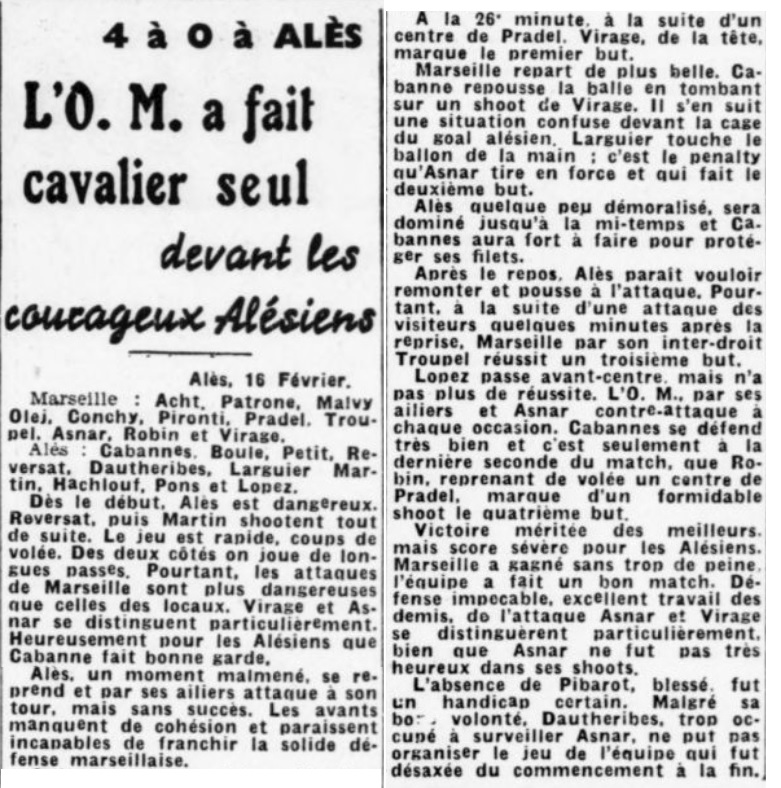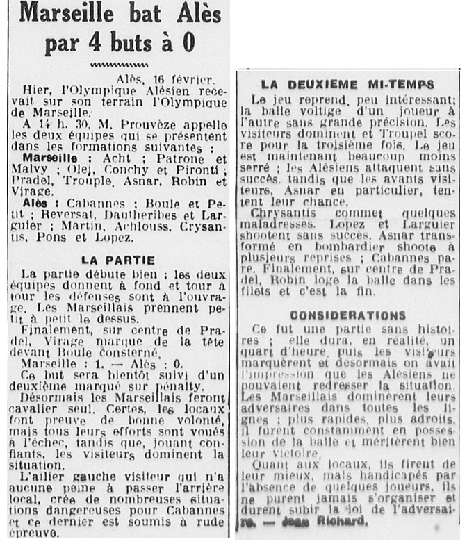 Résumé La Provence Sportive du 17 février 1941 |