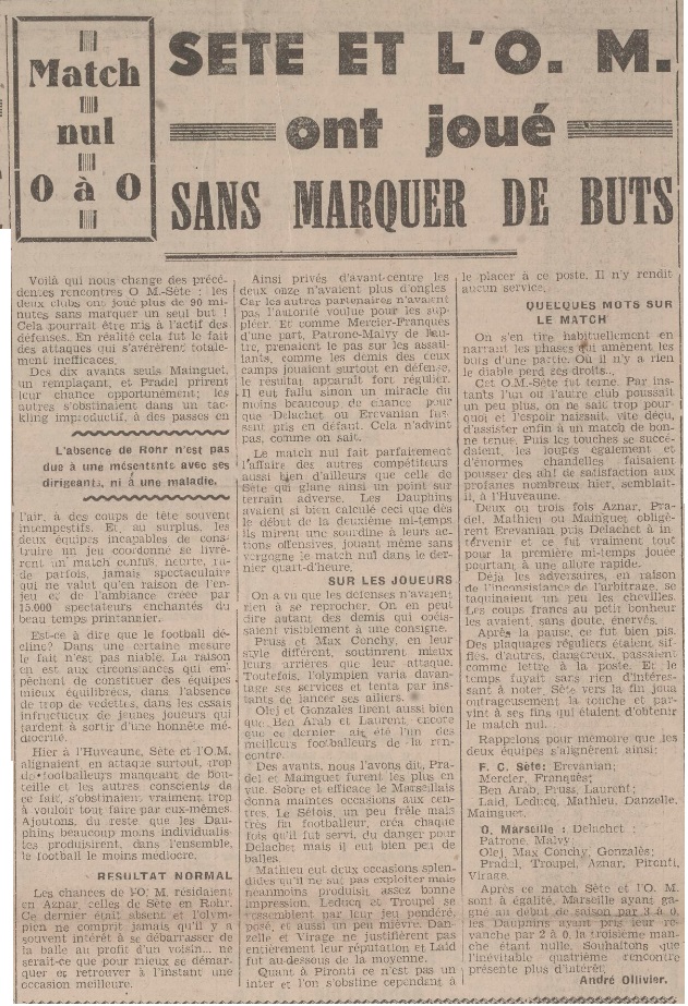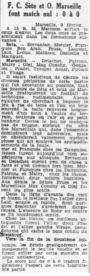 Résumé La Provence Sportive du 03 mars 1941 |