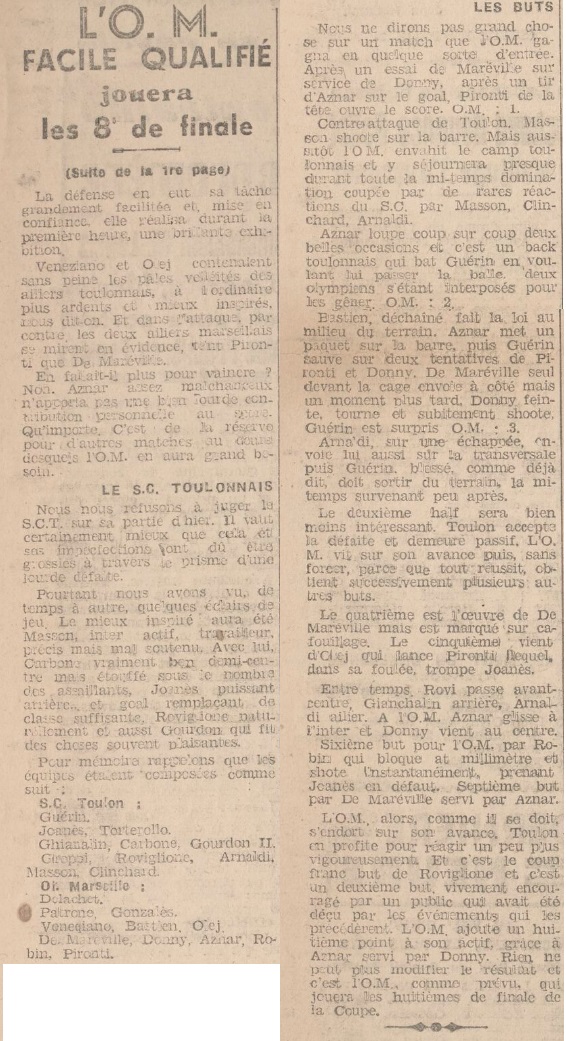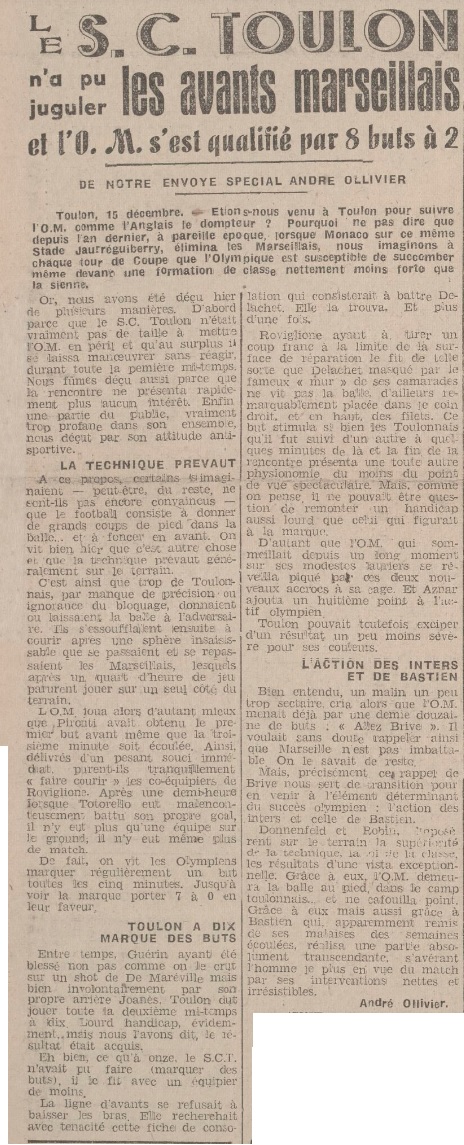 Résumé La Provence Sportive du 14 décembre 1942 |