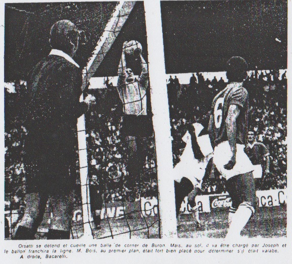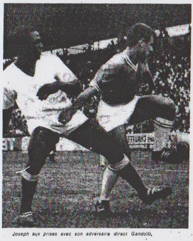 Varchi remarquait : "Nous avons dominé sur l'ensemble du match ! Le résultat final est donc normal". Hodoul déclarait de son côté : "Ce ne fut pas trop dur ! Dans tous les cas, ce fut moins dur que ce que je redoutais". Casolari murmurait : "Sans aucun doute, les blancs d'aujourd'hui étaient les meilleurs". Escale exultait : "C'est fini de trembler, maintenant on pourra dormir tranquille ! Plus de spectre des barrages !" Joseph affirmait : "Je n'aurais pas cru que nous l'emporterions par une marge aussi élevée". Viaene tenait une canne à la son : "C'est l'un de nos amis qui main et nous a expliqué la rai- avait cet instrument, comme il est nerveux, j'avais peur qu'il en fasse un mauvais usage au cours de la partie. Fiawoo, dans un coin, était le donnait un coup de tête ! "C'est la seule triste. Je regrette d'avoir première fois que cela m'arrive depuis que je joue au football ! " Alain DELCROIX |