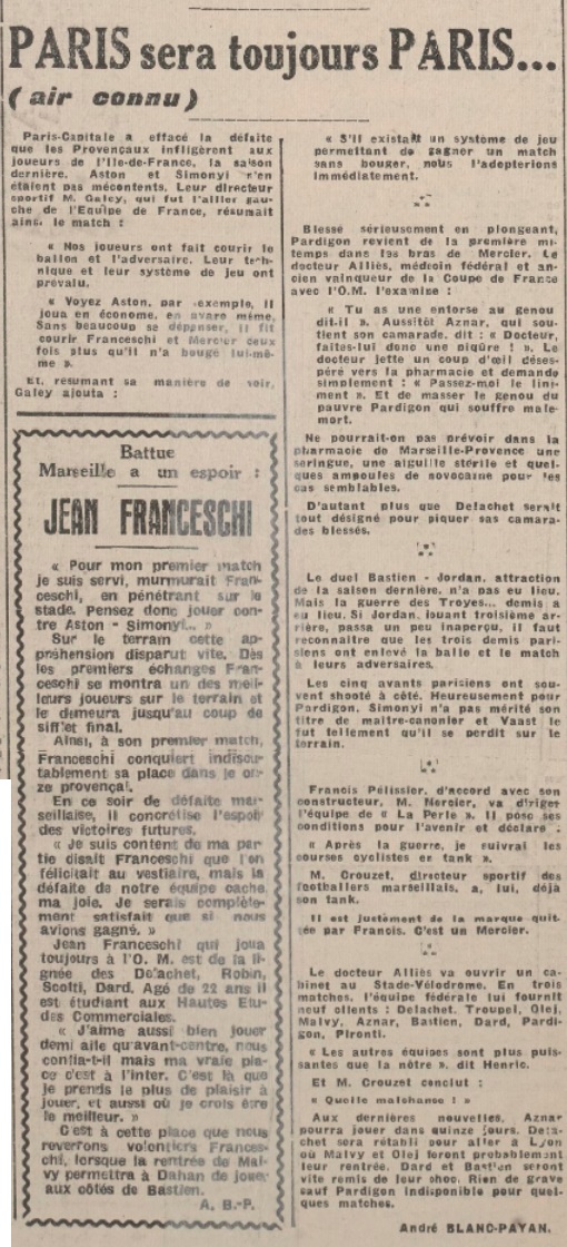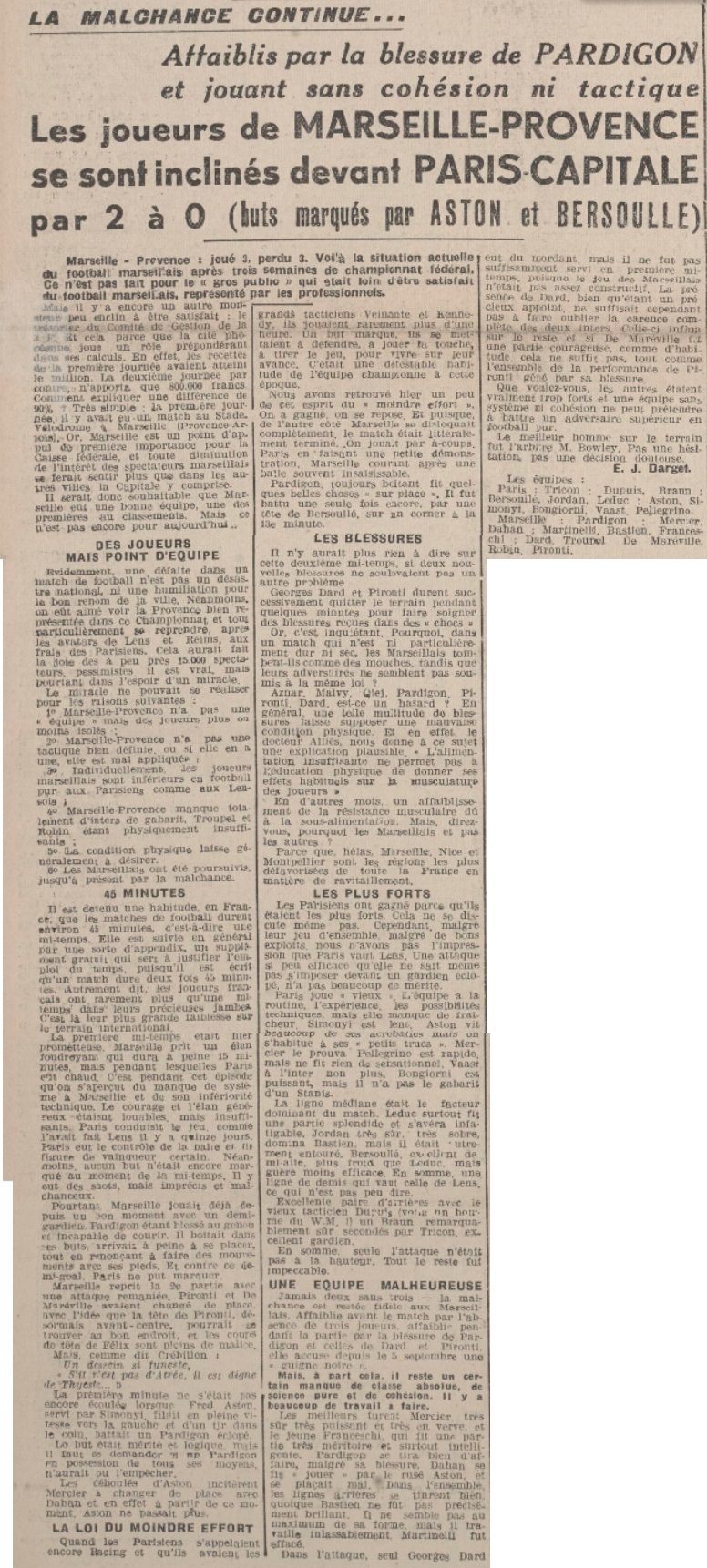 Résumé La Provencal Sportive du 20 septembre 1943 |