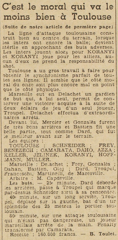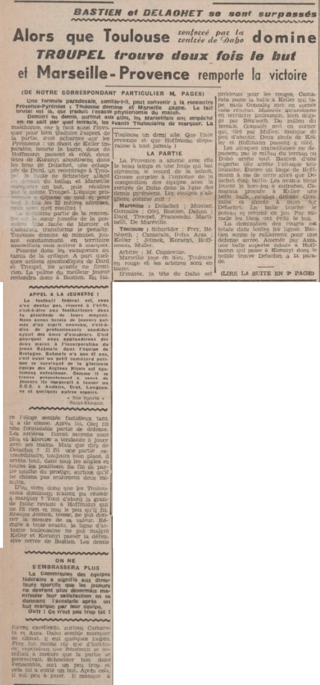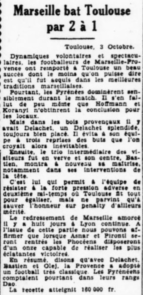 Résumé La Provencal Sportive du 04 octobre 1943 |