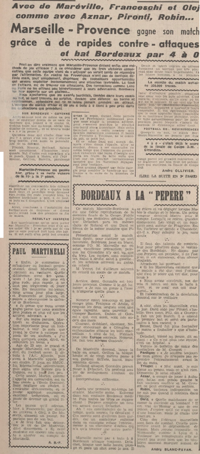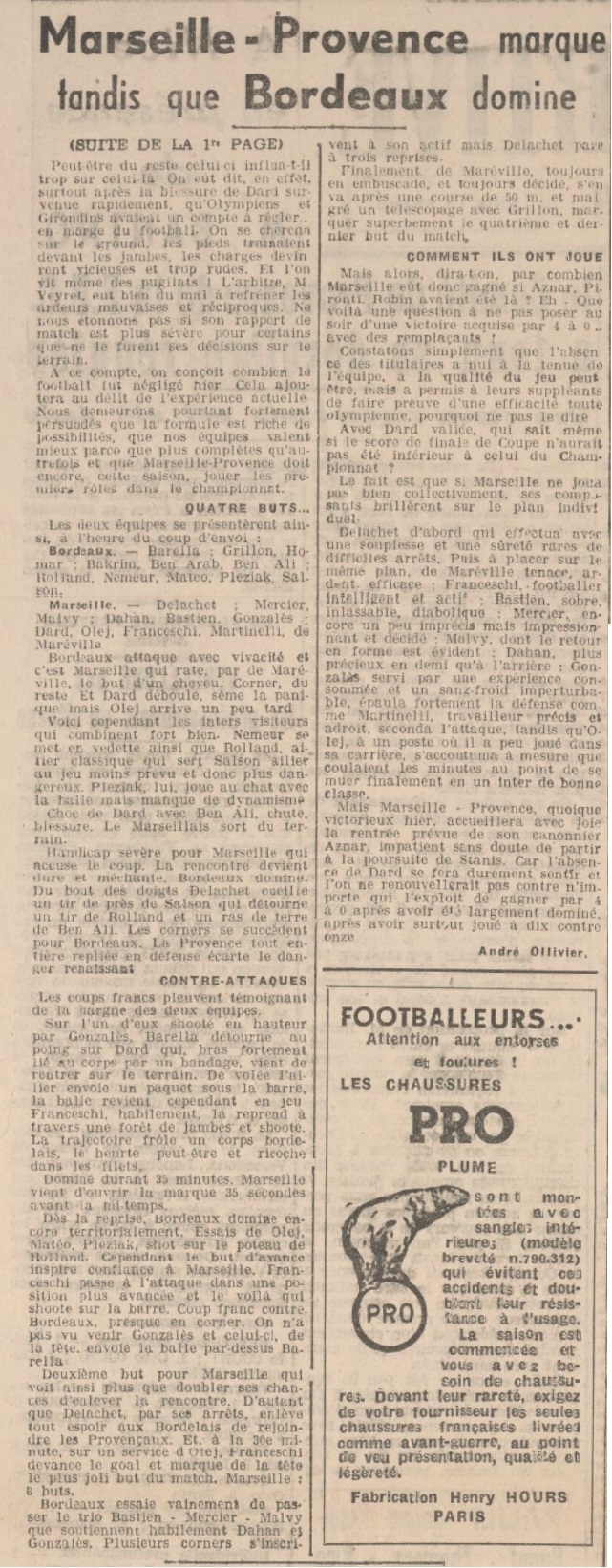 Résumé La Provencal Sportive du 11 octobre 1943 |