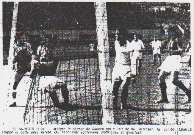 Si le match aller avait vu une débauche de but - Nice on s'en souvient, l'emporta par 6 buts à 4 - la rencontre d'hier fut loin d'être aussi prodigue en ce point de vue, puisqu'un seul but a été réussi (Bollano) au cours de cette deuxième confrontation officielle entre les deux clubs sudistes. L'O.M., cette fois est sorti victorieux mais si son succès n'a été obtenu que de justesse, il n'en est pas moins mérité. Malgré le vent violent, cette rencontre fut agréable à suivre. Plus de technique d'un côté de Nice où l'on sentit en attaque surtout, une tactique de jeu bien défini, plus de volonté du côté marseillais. Les Niçois, qui avaient débuté avec l'avantage du vent, ne surent pas en tirer profit. Ils sur pourtant se créer quelques occasions favorables, notamment par Bonifaci (12me minute) dont le shoot s'écrasa sur la verticale : par Carré (21me minute), Liberati plongea mais ne put contrôler la balle qui allait entrer dans les filets, lorsque Rodriguez la sortit "in extremis". Les Olympiens n'étaient pas restés inactifs pendant ce temps-là. Au contraire, mais si les avants avaient mené de rapides contre-attaques par Nagy, Bollano et Dard, sur longues ouvertures de Robin et de Scotti principalement, les shoots avaient été en général assez mal dirigés. À la mi-temps, le score était donc toujours vierge, mais Nice qui allait à son tour, avoir le désavantage du vent, avait laissé passer sa chance. |