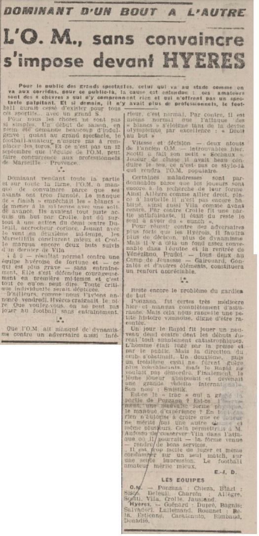 Résumé La Provencal Sportive du 13 septembre 1943 |