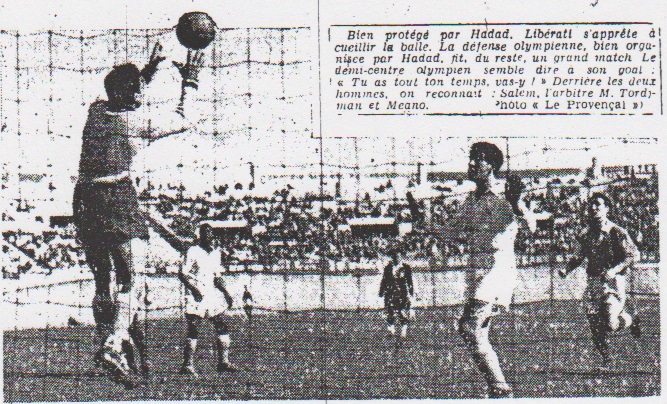Est-ce la présence de M. Paul Nicolas ? Est-ce le chaud soleil printanier ? Nul ne le sait, mais toujours est-il que Marseillais et Rémois, dimanche sur la pelouse du Stade Vélodrome nous ont fait assister à une rencontre heureuse, agréable, émaillée de phases valeureuses. Domination territoriale à outrance En première mi-temps, les blancs se portèrent hardiment à l'assaut des bois champenois. À la première minute, une descente audacieuse de Pujalte obligea la défense adverse à mettre en corner. Wagner, 3 minutes plus tard botta avec force, ce qui permit à Sinibaldi un arrêt de classe. À la 8me minute, un centre de Dard aboutit à Nagy, ce dernier shoota bien et Sinibaldi n'eut de ressources que dans un corner ! L'attaque olympienne en verve, continua à pratiquer un jeu plaisant, à faire courir la balle et à inquiéter Reims. Ce fut à la 9me minute, un corner botté magistralement par Dard et à la 21me minute un sprint fougueux du même joueur. Enfin, un 4me corner de Dard à la 22me minute. 2 minutes plus tard se déroula un épisode émouvant. Robin expédia le cuir avec puissance dans la cage, Sinibaldi dut se contenter d'un renvoi hasardeux du poing. Wagner surgit, reprit sans perdre une seconde et ce fut miraculeusement que Jonquet empêcha la balle de pénétrer dans les filets. |
