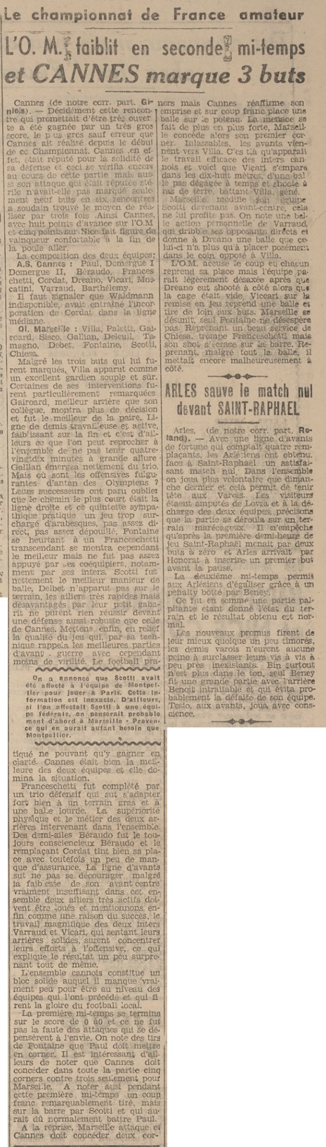 Résumé La Provencal Sportive du 22 novembre 1943 |