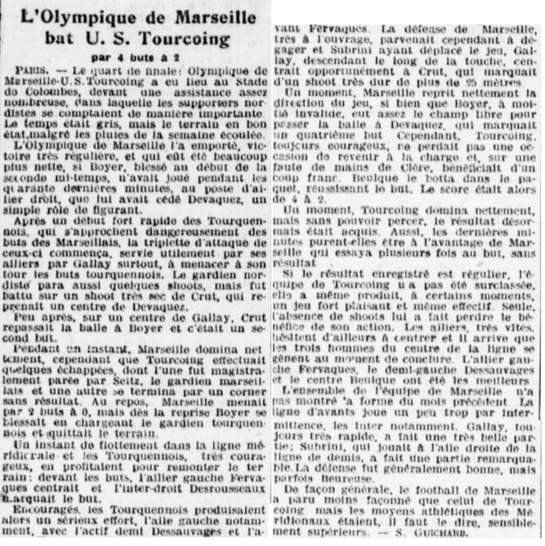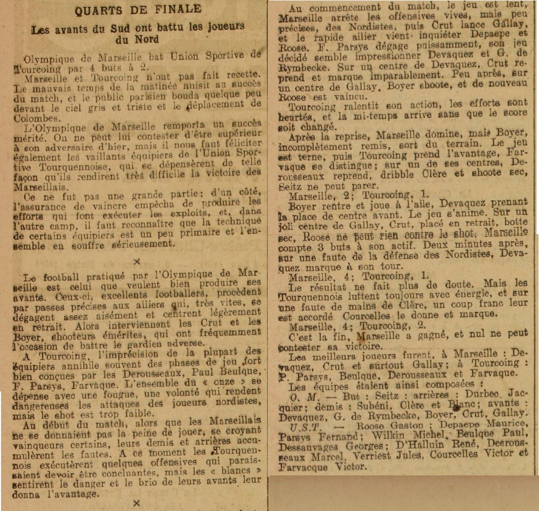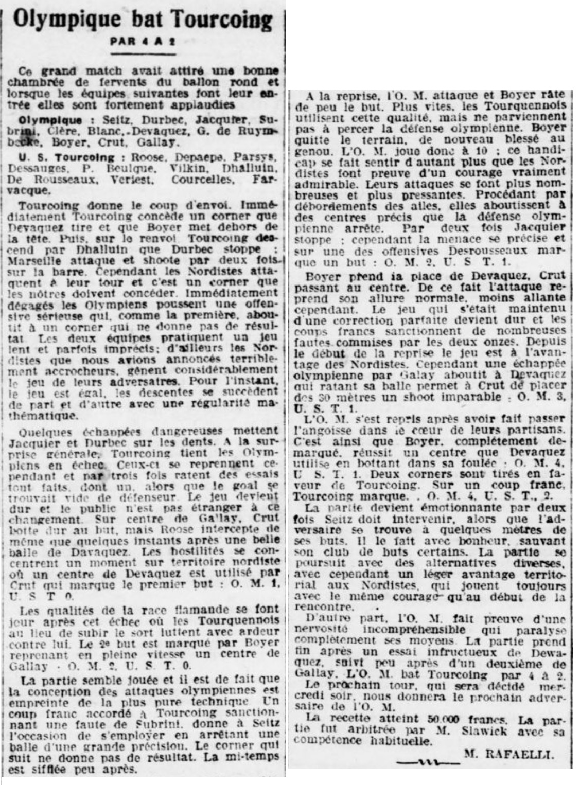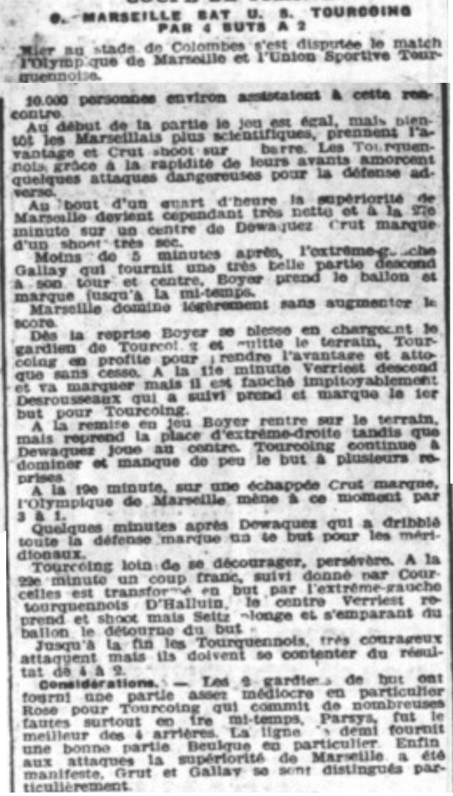 Résumé de l'Egalité Roubaix Tourcoing du 08 mars 1926 |