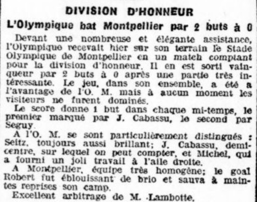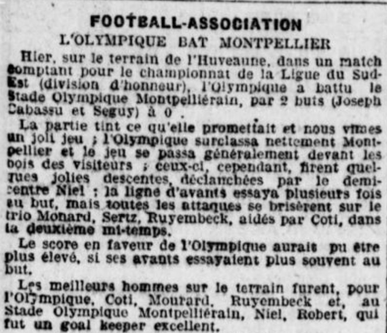 Nota : Provence Sports : " Une fâcheuse panne de tramway est cause du retard de notre directeur COTI, qui rentrera sur le terrain dix minutes après la mise en jeu" |