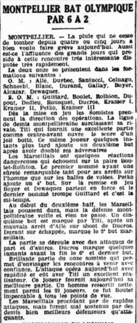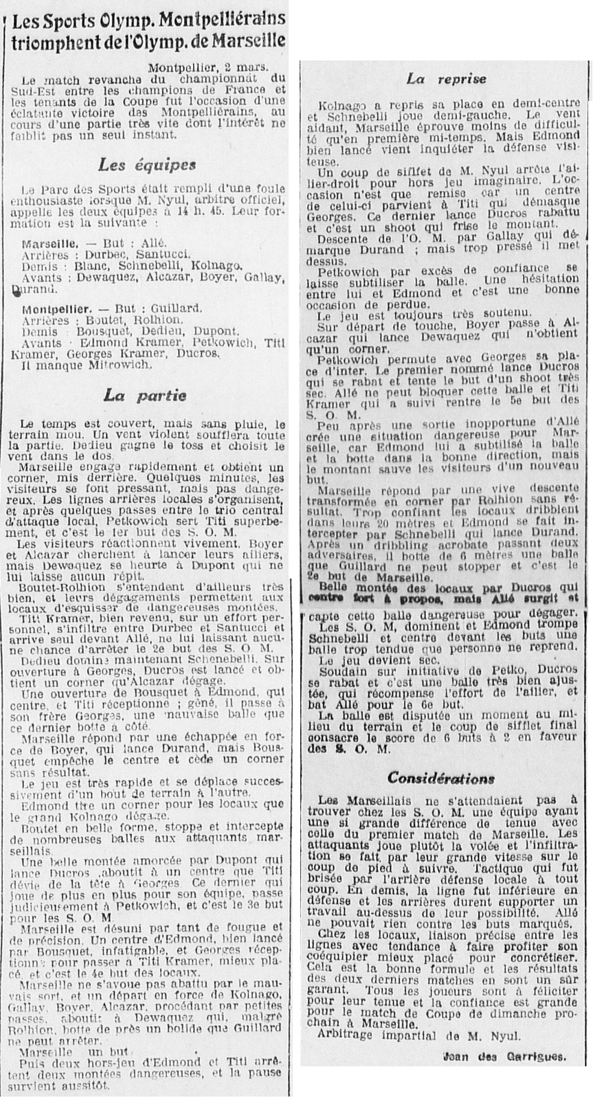 Résumé du Sport du Sud-Est du 03 mars 1930 |