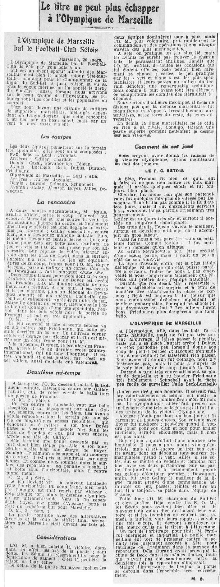 Résumé du Petit Marseillais du 31 mars 1930 |