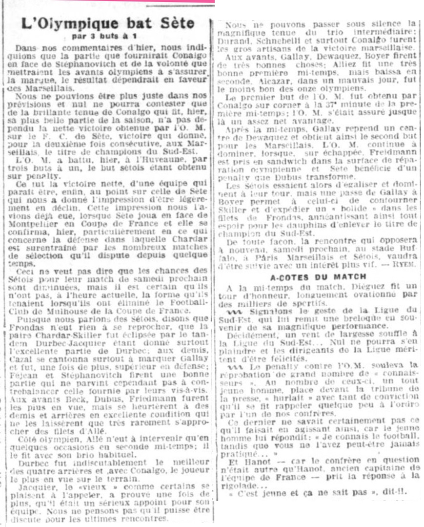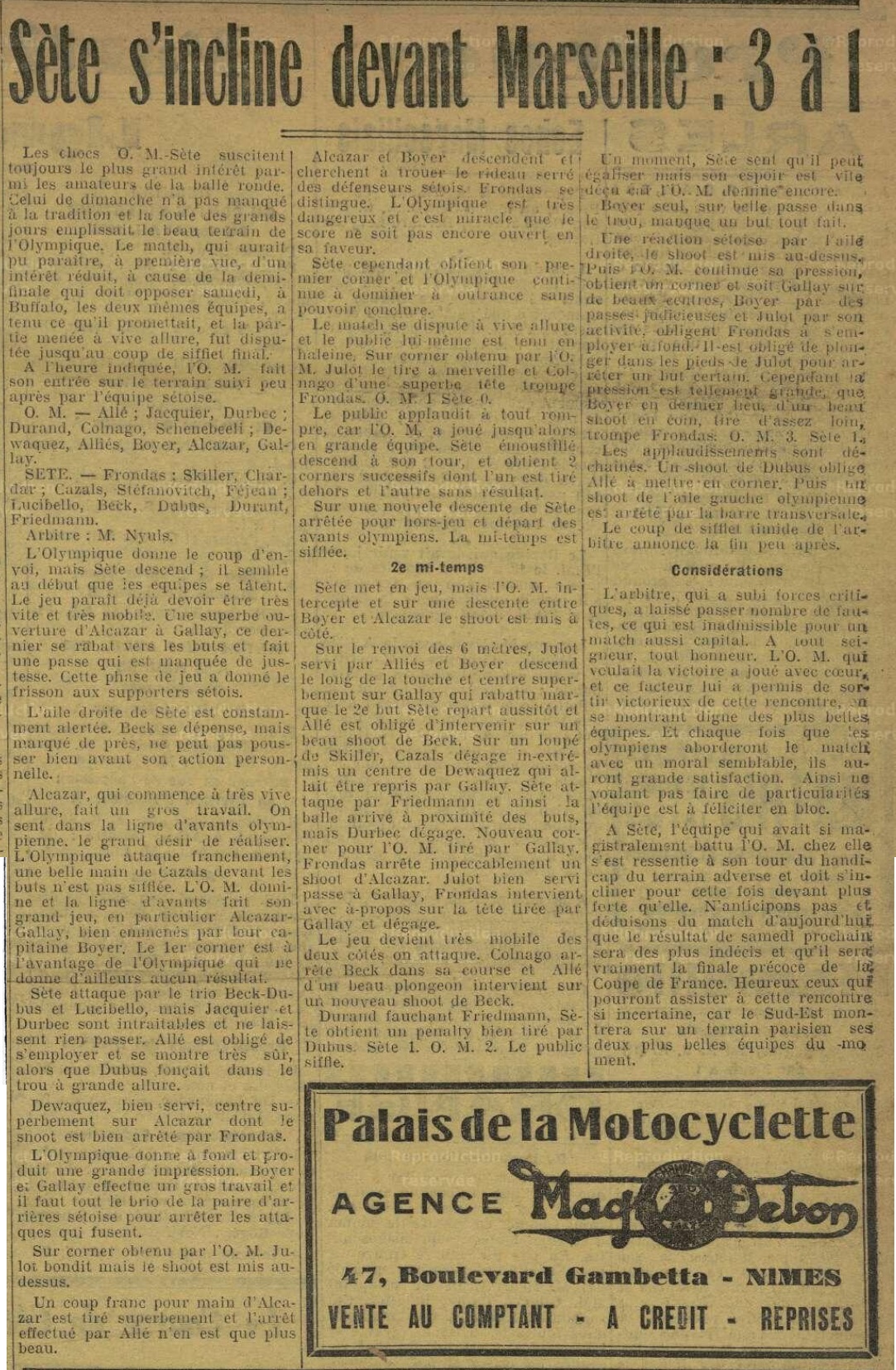 Résumé du Sport du Sud Est du 02 avril 1930 |