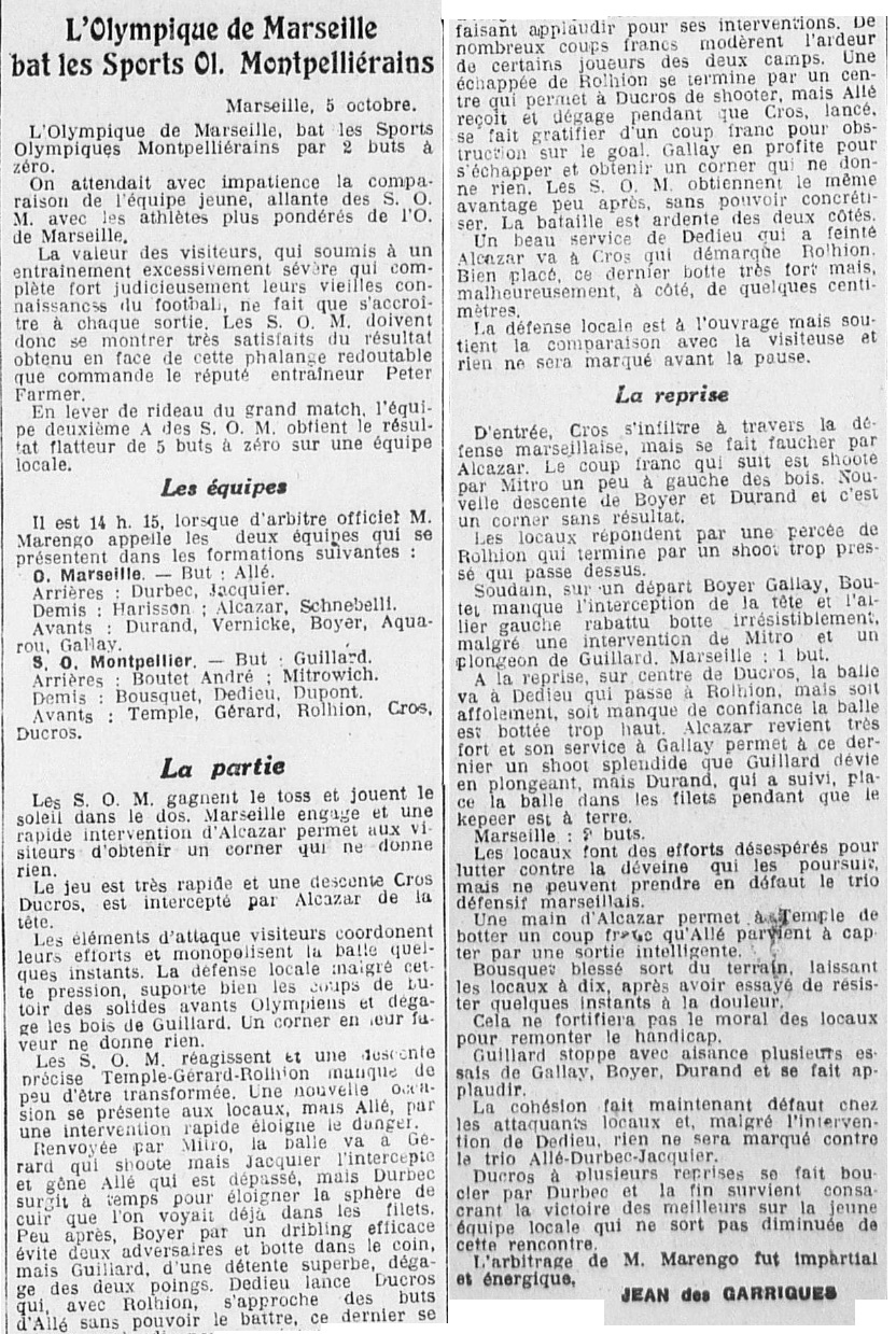 Résumé du Petit Marseillais du 06 octobre 1930 |