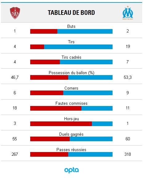 L'OM s'est imposé 2-1 à Brest grâce à des buts signés Diawara (33') et A.Ayew (56'). Benschop avait égalisé en première période (42'). Grâce à ce succès, les Olympiens prennent la deuxième place du classement. Joey Barton a réalisé deux passes décisives. Défaits à domicile contre Lyon (4-1), l'OM devait retrouver la victoire rapidement. C'est chose faite. Pourtant il n'est pas aisé de se déplacer à Brest. Invaincus à domicile avant la rencontre, les hommes de Landry Chauvin comptaient cinq victoires et un nul. Le début de match était assez timide. Sous le brouillard du stade Francis Le-Blé, les deux équipes se regardaient et tentaient timidement leur chance par A.Ayew (14' , 21' ) ou Larsen Touré (20'). L'ouverture venait de Joey Barton a dix minutes de la pause. Bien lancé côté gauche, le milieu anglais remettait en retrait pour Diawara qui déposait un bijou dans la lucarne de Thébaux (33'). Une ouverture du score mérité. Dans la foulée Amalfitano et Valbuena essayaient de creuser l'écart mais échouaient face à un excellent gardien brestois (33' , 36'). Juste avant la pause, l'OM se relâchait et laisser Brest s'exprimer. Sur un corner, Lesoimier reprenait de la tête et obligeait Mandanda à s'employer mais Benschop esseulé, poussait le ballon au fond des filets (42'). Au retour des vestiaires, l'OM était plus conquérant. Amalfitano centrait côté droit pour Joey Barton qui récupérait le ballon et frappe fort mais Thébaux réalisait une belle parade du pied (47'). Auteur d'une excellente prestation, André Ayew marquait le but vainqueur pour les Olympiens. A la récupération du ballon, Joey Barton partait en profondeur côté gauche et servait le numéro dix de l'OM dans la surface qui poussait le ballon au fond des filets (56'). Assommé, Brest tentait le tout pour le tout en fin de match. Lesoimier envoyait un missile mais Mandanda claquait bien la balle et sauvait les siens (77'). En fin de rencontre les Olympiens s'accrochaient et ne laissaient aucun espace aux coéquipiers de Kantari. L'OM est le seul club a avoir fait tomber Brest à domicile en championnat cette saison. Cela n'a rien d'un exploit mais les joueurs ont su se relever après la déroute face à Lyon. Cette victoire permet aux hommes d'Elie Baup de prendre la deuxième place du classement et mettre le PSG à trois points. Auteur : Florian Delle Vergini |