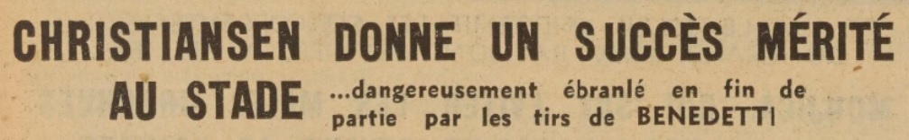 LE PUNCH A MANQUE AUX AVANTS DE L'O.M. et le Stade dominé a assuré sa victoire grâce à une échappée de Christiansen (De notre envoyé spécial : Lucien D'APO) |