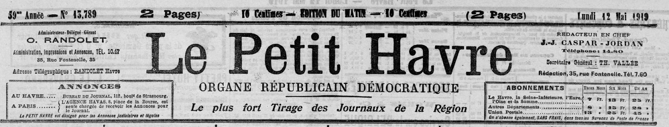 Résumé Le Petit Marseillais du 12 mai 1919 |
