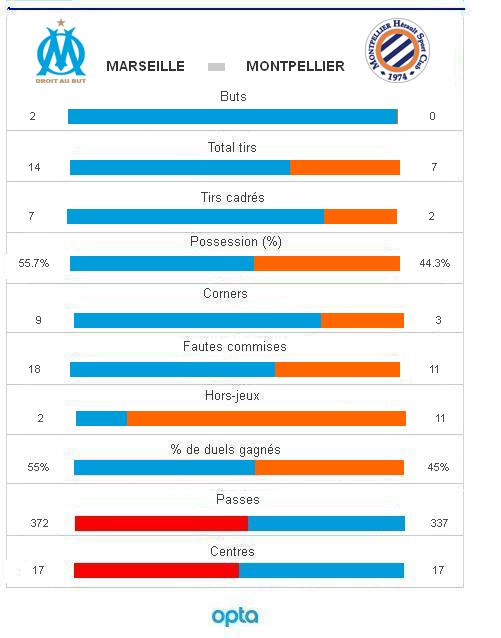 En battant Montpellier 2 buts à 0, grâce à Thauvin et Khalifa, l'OM est le premier club de l'histoire du football français à atteindre la barre des 1000 victoires en championnat. Une fois de plus : à jamais les premiers... L'OM ne veut pas perdre de temps pour marquer une fois de plus l'histoire du championnat de France. D'entrée il monopolise le ballon. D'entrée Montpellier perd un joueur. Jamel Bakar se blesse après seulement deux minutes de jeu. Coup dur pour Jean Fernandez. Montano remplace le natif de Marseille. Le nouvel entrant se met tout de suite en évidence, obligeant Steve Mandanda à repousser sa frappe en corner. Une petite alerte pour l'OM. Il y en aura pas d'autre en première mi-temps. Les Olympiens la veulent leur 1000e victoire en championnat. Ce qu'ils ont subi face à Arsenal en Ligue des Champions mardi, les hommes d'Elie Baup le font vivre à Montpellier ce soir. Dimitri Payet, de retour après sa blessure au genou, a des fourmis dans les jambes. Il régale le public du Vélodrome à chaque prise de balle. Toujours sur le côté gauche, Mendy fait des misères à Congré. Valbuena et Gignac obligent Jourdren à s'employer. Au milieu, Romao ratisse tous les ballons. L'OM a la main mise sur la rencontre il ne lui manque qu'un but pour valider sa domination. Il arrive un peu après la demi-heure de jeu quand Thauvin, discret jusque-là, reprend instantanément une remise de Payet, à la suite d'un bon centre d'Abadallah. A la manière d'un renard des surfaces, l'homme en forme du moment à l'OM valide l'excellente première période des Olympiens. Pas question pour la bande à Elie Baup de s'arrêter en si bon chemin. Pour fêter comme il se doit une soirée historique pour le club, elle poursuit son travail de sape. Dès le coup d'envoi de la seconde mi-temps, elle garde le contrôle des évènements. Mais l'entrée en jeu de Camara et la réorganisation tactique opérée par Jean Fernandez sortent les Montpelliérains de leur torpeur. Plus pressants, les Héraultais font planer la menace d'une égalisation malvenue sur les buts de Steve Mandanda. En plus, l'OM a les occasions pour se mettre à l'abri, notamment Gignac, mais il ne les concrétise pas. Il fait le dos rond, sert les dents et s'appuie sur une défense irréprochable pour maintenir son maigre avantage. Les Olympiens avaient systématiquement pris au moins un but lors des dix derniers matches, ce soir ils tiennent bon. Diawara et Nkoulou verrouillent l'axe, Abdallah et Mendy les ailes, Mandanda récupère les miettes. Finalement, au bout du suspens, avec la peur de devoir attendre encore un peu pour écrire une nouvelle page de son histoire, l'OM aggrave le score en toute fin de match grâce au premier but de Khalifa sous le maillot bleu et blanc. Les Olympiens, solides, l'emportent 2-0 et signent ainsi la millième victoire du club en championnat. Auteur : Allan Chaussard |