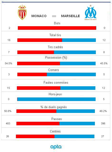 AS Monaco FC 2-0 OM, compte rendu Belle victoire des Rouge et Blanc face à l'OM, Germain et Rivière buteurs, mais surtout belle opération au classement avant le prochain déplacement à Lorient. Départ canon Après le vibrant hommage rendu à Radamel Falcao et le coup d'envoi fictif donné par Sonny Anderson et Youri Djorkaeff, l'AS Monaco FC anime le match dès les premiers instants. On joue depuis une minute à peine quand Rivière reprend de volée un bon centre de Raggi. C'est au prix d'un véritable exploit que Mandanda s'interpose. Les rôles sont inversés à la 16e minute quand Raggi reprend du gauche un centre de Rivière, mais le résultat est le même avec un Mandanda qui maintient son équipe dans le match. Dans la foulée, le portier olympien est tout heureux de voir un tir de Rivière raser son poteau droit. Le match est lancé. Première pour Germain ! Après ce départ canon, les Rouge et Blanc baissent logiquement en rythme passées les vingt premières minutes de jeu, mais demeurent concentrés et solides pour s'éviter toute frayeur devant des Marseillais timorés. A la 30e le second souffle est trouvé et c'est encore Mandanda qui s'interpose devant Germain sur un centre à ras de terre de Rivière. Dix minutes plus tard, la cinquième occasion franche de l'ASM est la bonne. Lancé par Moutinho, Germain se présente devant Mandanda et le trompe d'un plat du pied enroulé dans le petit filet. C'est avec un avantage fort logique qu'Eric Abidal et les siens rejoignent les vestiaires à la pause. Rivière en force A la reprise, James alerte Mandanda sur un coup franc lointain, mais son tir passe à côté du but marseillais. À la 51e, M. Turpin oublie de siffler un penalty pourtant justifié sur Kondogbia après une faute du nouvel entrant, Imbula. Alerté par un long ballon de Moutinho dans la foulée, James se retrouve seul face à Mandanda mais il écrase trop son tir et le gardien international français sauve à nouveau les siens. Il ne peut rien en revanche à la 57e face à Rivière. Idéalement trouvé par Kondogbia, il contrôle et catapulte le ballon au fond d'une reprise surpuissante. Il reste encore plus d'une demi-heure mais ce break met les Rouge et Blanc dans les meilleures dispositions. Fin de match contrôlée Il faut tout de même un bon Subasic à la 59e pour empêcher la réduction du score de Gignac, mais l'ASM gère sa fin de match avec maîtrise, ne laissant que peu d'opportunités aux Olympiens. Gignac, Khalifa et Diawara alertent Subasic sans l'inquiéter, idem pour Obbadi et Ocampos dans l'autre sens. Après avoir contrôlé le match de bout en bout, les hommes de Claudio Ranieri savourent leur succès dans les derniers instants pour le plus grand plaisir de leurs supporters. A quinze jours de la réception du leader parisien, les voici revenus à trois points. Mieux, le troisième lillois est désormais à sept points et le quatrième stéphanois à onze ! Ce fut un week-end parfait pour l'AS Monaco FC qui voulait offrir une victoire à Radamel Falcao. C'est fait avec la manière ! |